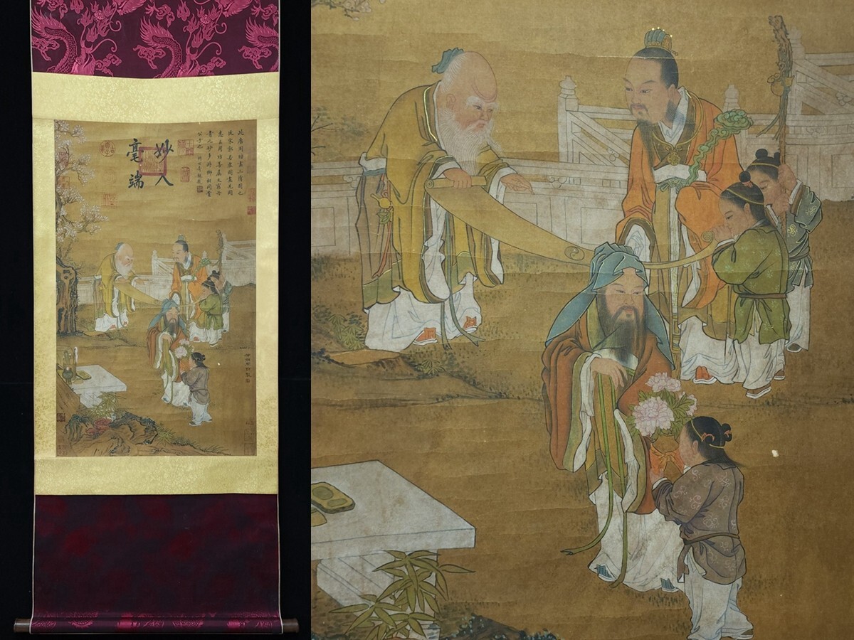 中国書画「唐 周昉 人物図」肉筆絹本 掛け軸 墨寶妙品 中国画 立軸 巻き物 古美術 骨董品 蔵出