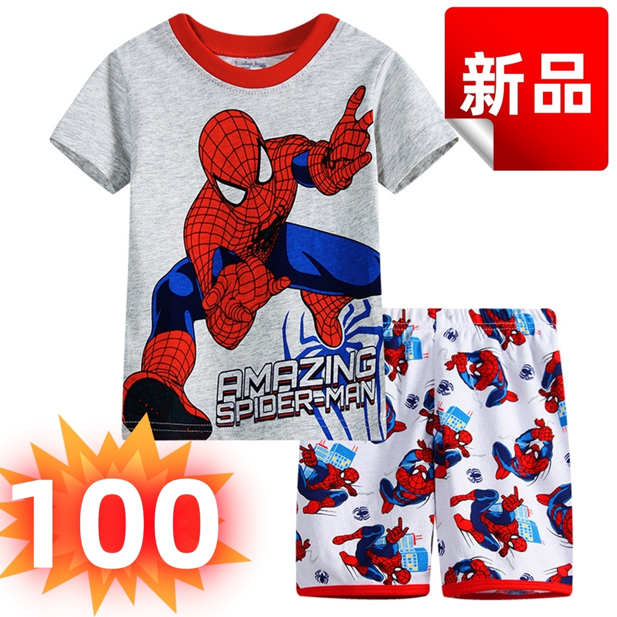 ★新品★スパイダーマン 子供パジャマ 男の子 半袖Tシャツ&ショートパンツ 上下セット キッズルームウェア 部屋着 100cm コットン 綿100%
