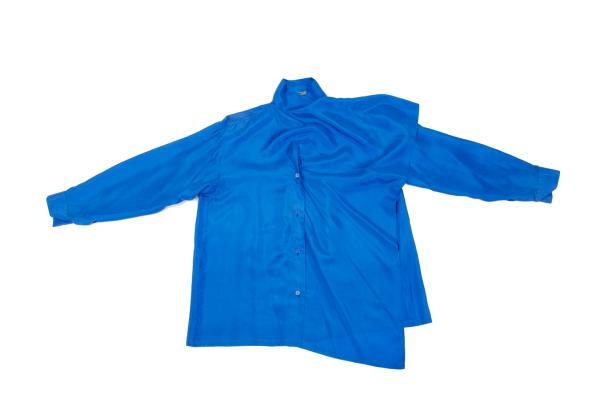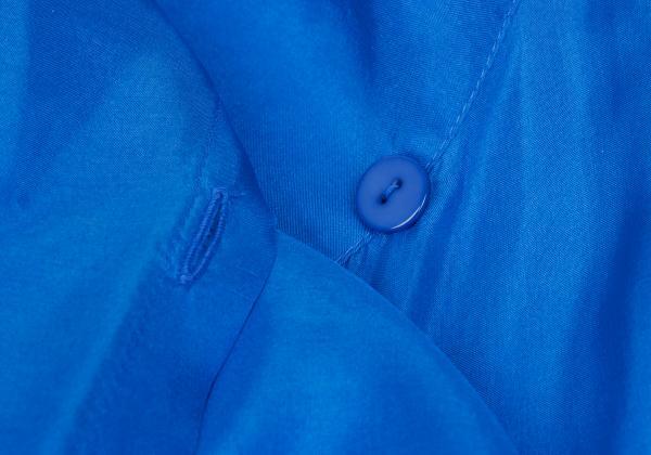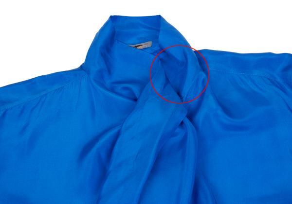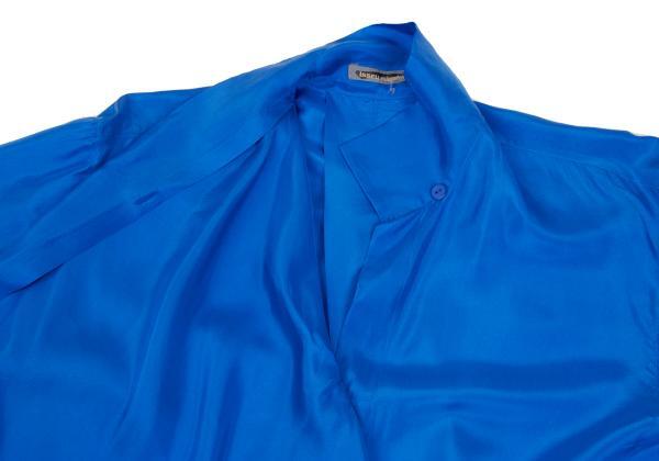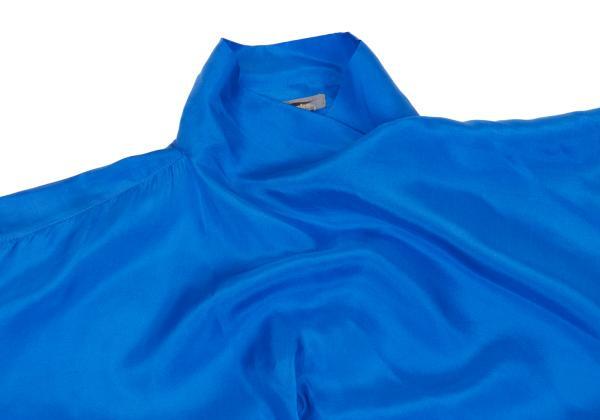 イッセイミヤケISSEY MIYAKEシルクアシンメトリードレープブラウス 青M |