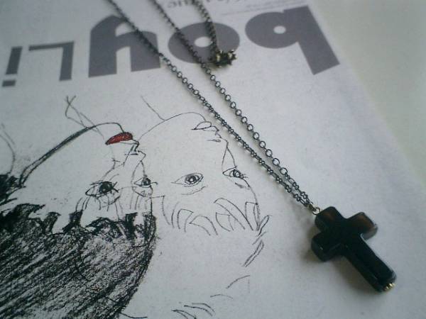 アート・クチュール・・シリーズです♪オニキス・パンク・・シックなオニキスのクロスのネックレスです♪繊細なチェーンに30×20ミリのオニキスクロスを合わせてさりげなくパンクしています♪長さは72センチ+アジャスター13センチで最長85センチ位です♪お揃いのピアスも出品しています♪♪シンプルで長く着けていただけるデザインを考えて作りました♪ハンドメイドをご理解頂いてノークレーム、ノーリターンでお願いします