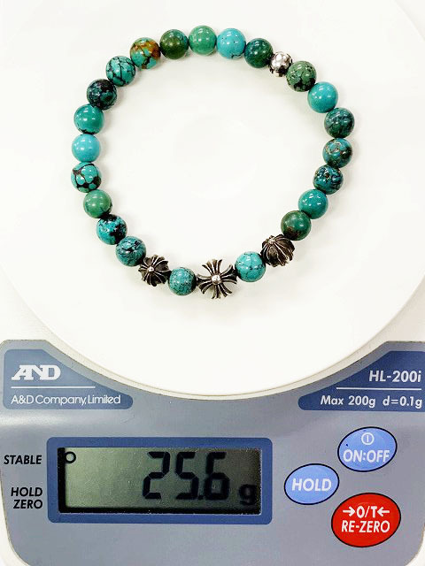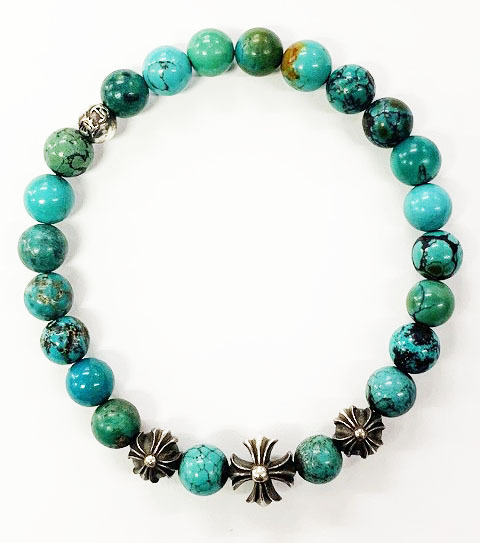 クロムハーツ CHROME HEARTS 8mm BEAD ブレスレット ターコイズ ビーズ シルバー 【ブランド古着ベクトル】☆AA★▲ 250324 メンズ
