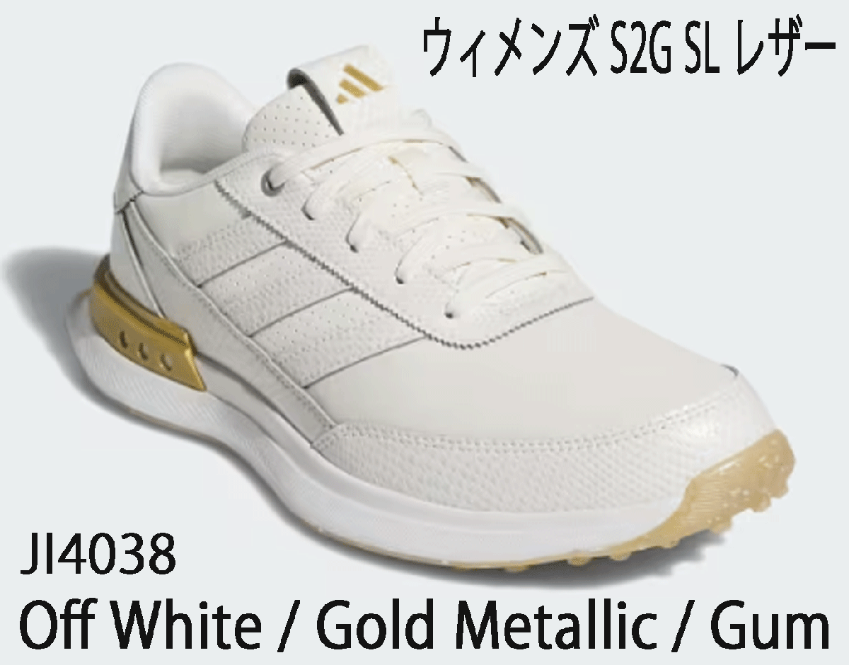 新品■アディダス■2025.2■ウィメンズ S2G-スパイクレス レザー■JI4038■オフホワイト/ゴールドメタリック/ガム■22.5CM■正規品