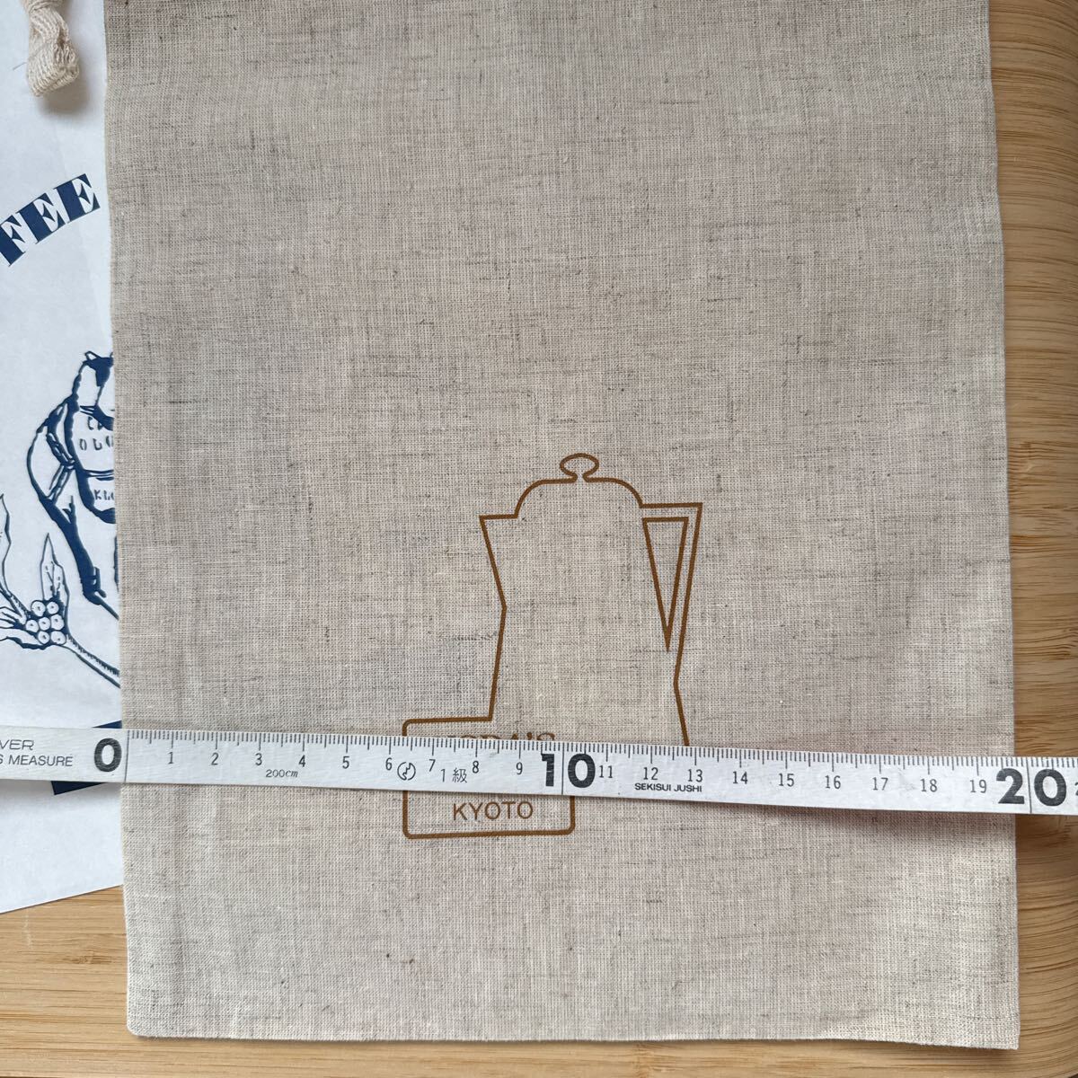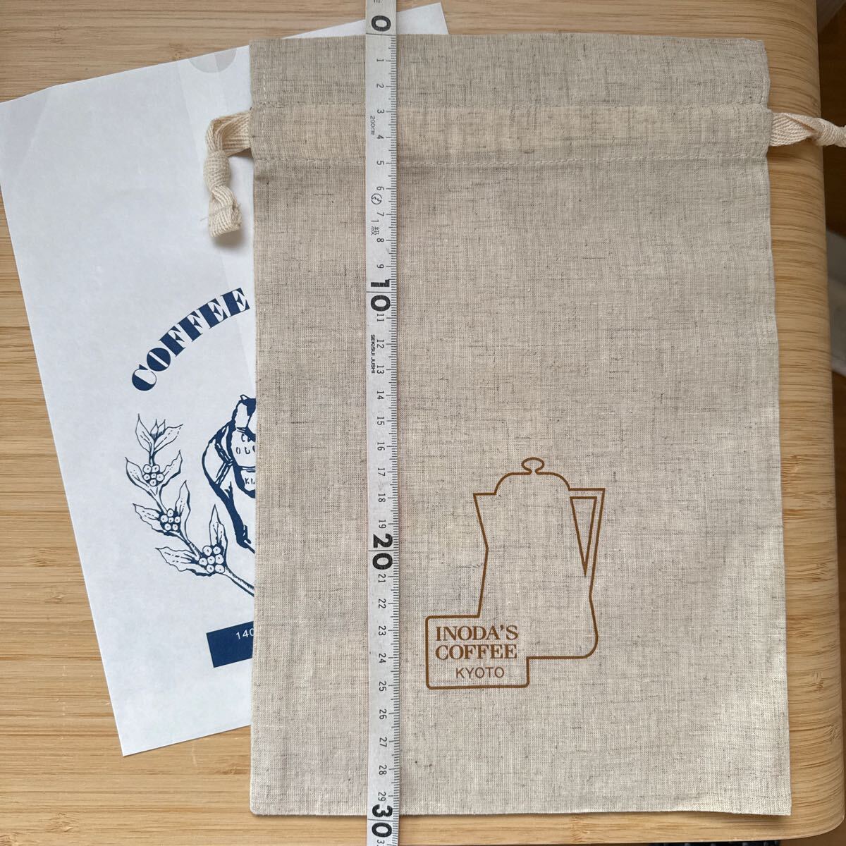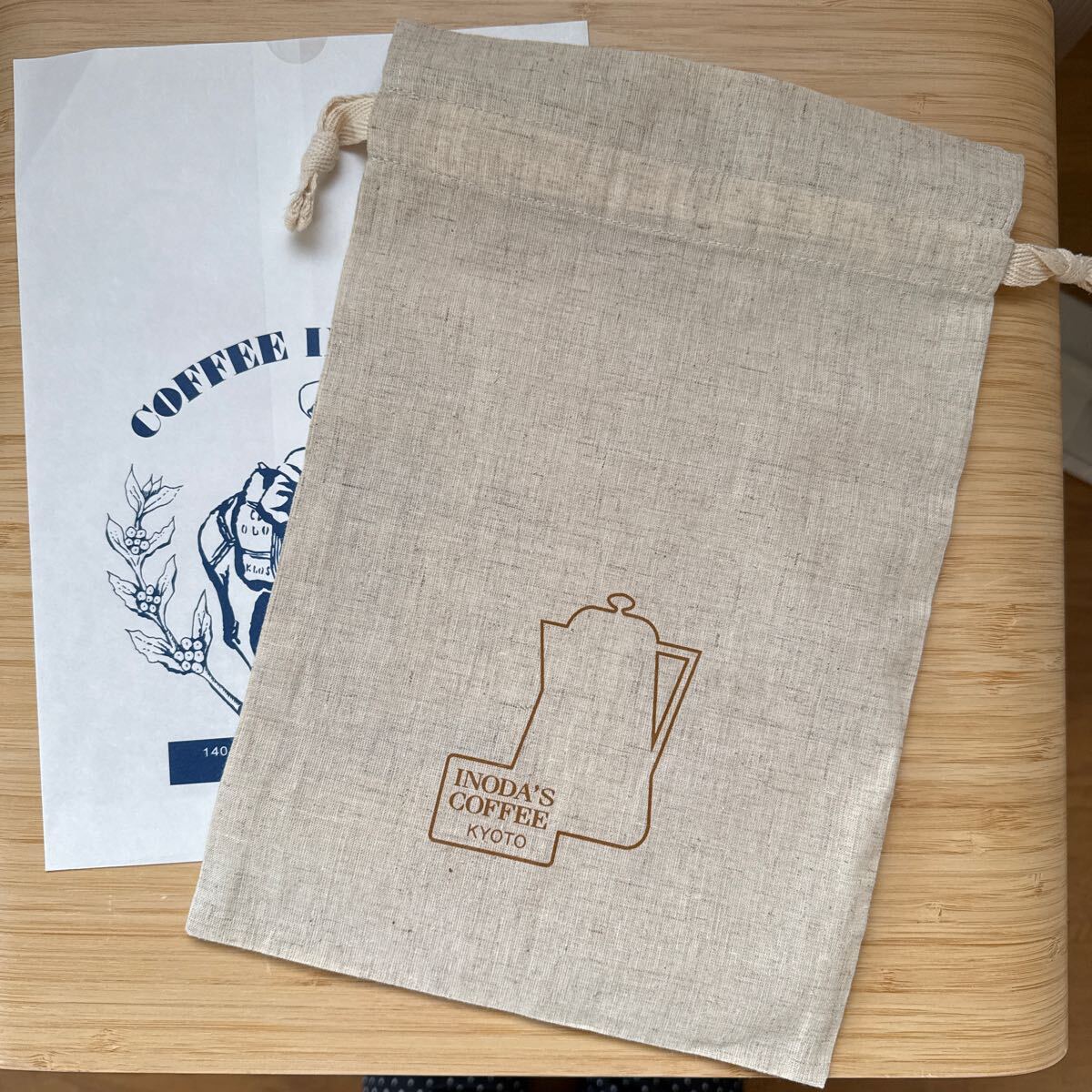 イノダコーヒ 本店 京都 巾着袋 約30×20cm シーチング 麻風 小物入れ コーヒー ポット カップ 薄手帆布 バッグイン inoda coffee mini bag