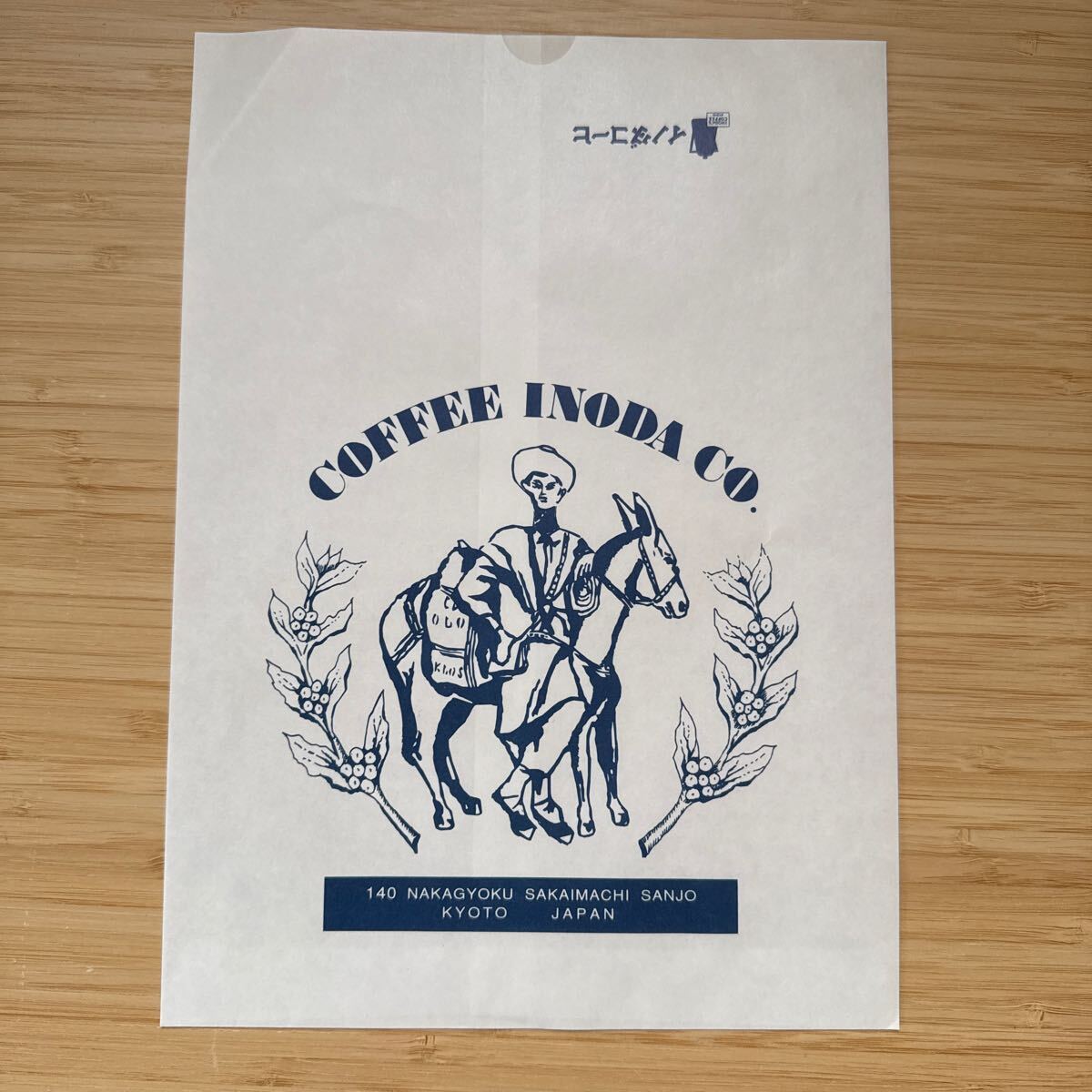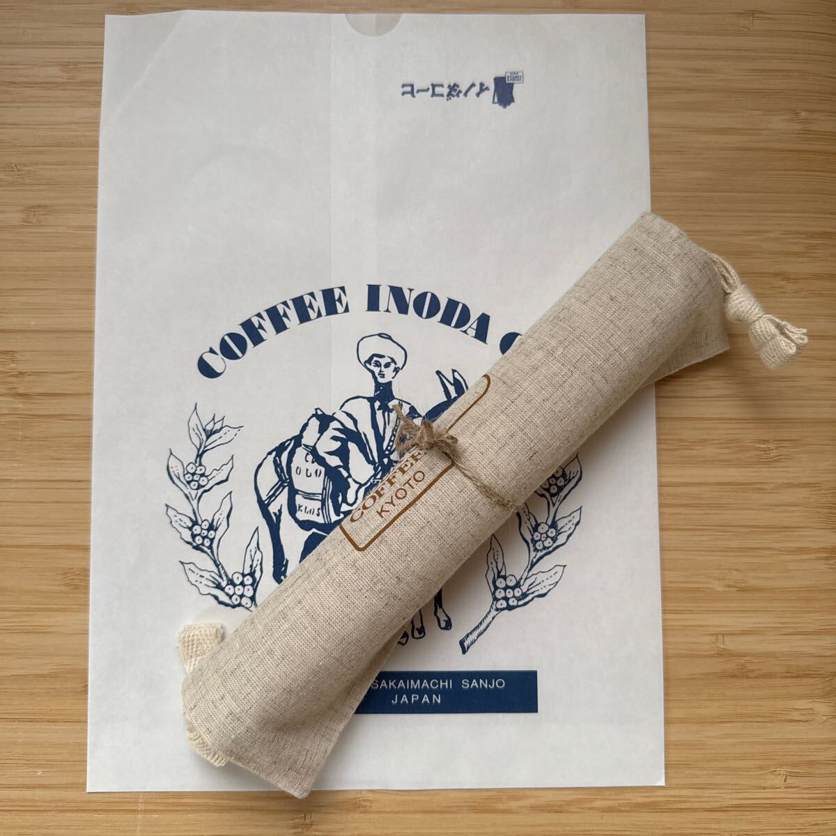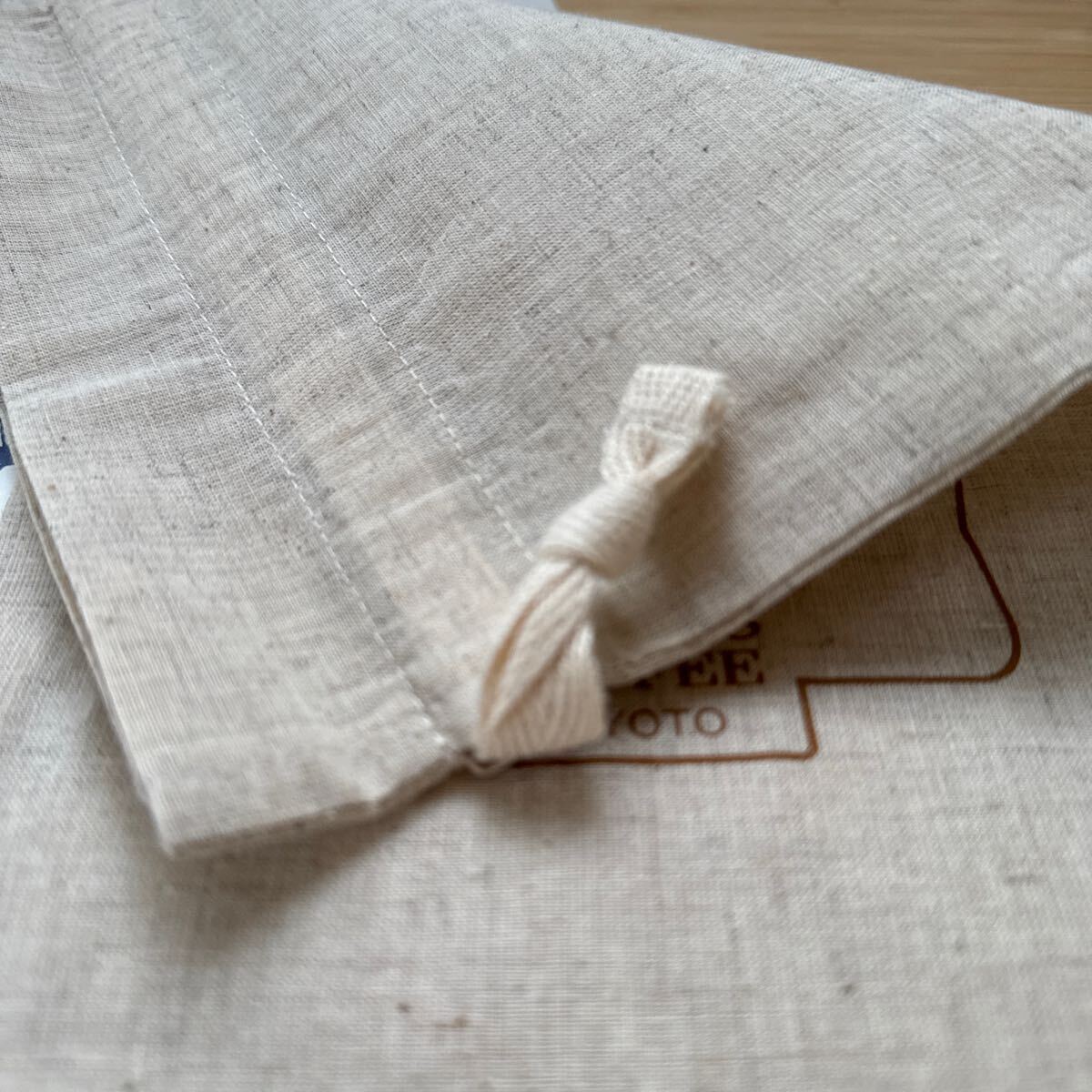 イノダコーヒ 本店 京都 巾着袋 約30×20cm シーチング 麻風 小物入れ コーヒー ポット カップ 薄手帆布 バッグイン inoda coffee mini bag