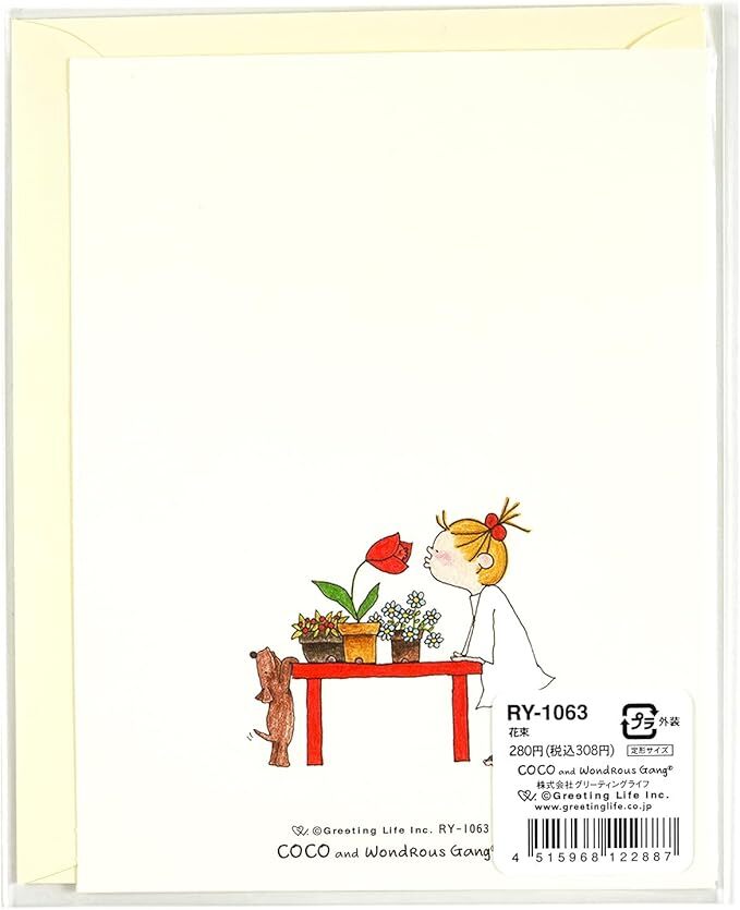 【即決】▽ココちゃん サンキューカード▽ グリーティングライフ COCOちゃん メッセージカード 花束 封筒付 グリーティングカード RY-1063