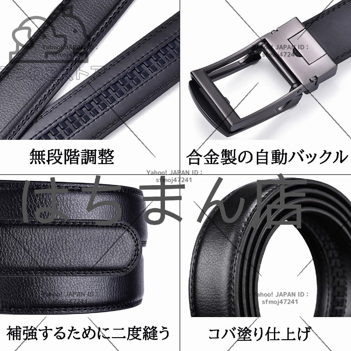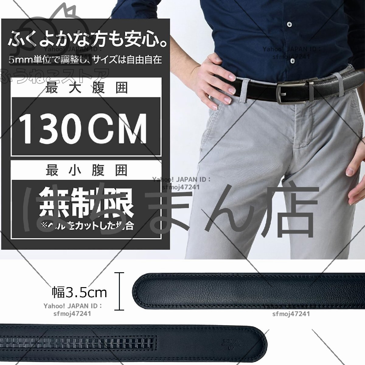 ベルト メンズ ビジネス オートロック式 大きいサイズ 紳士用ベルト 本革 穴なし 無段階調節 牛革 ブラック サイズ:130
