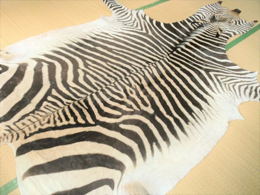 ゼブラ 敷物 約 312×244 cm ラグ カーペット 教材 生物 解剖学 美術 シマウマ 頭 剥製 革 毛皮 インテリア 骨格 模型 解剖 壁掛 本革 標本