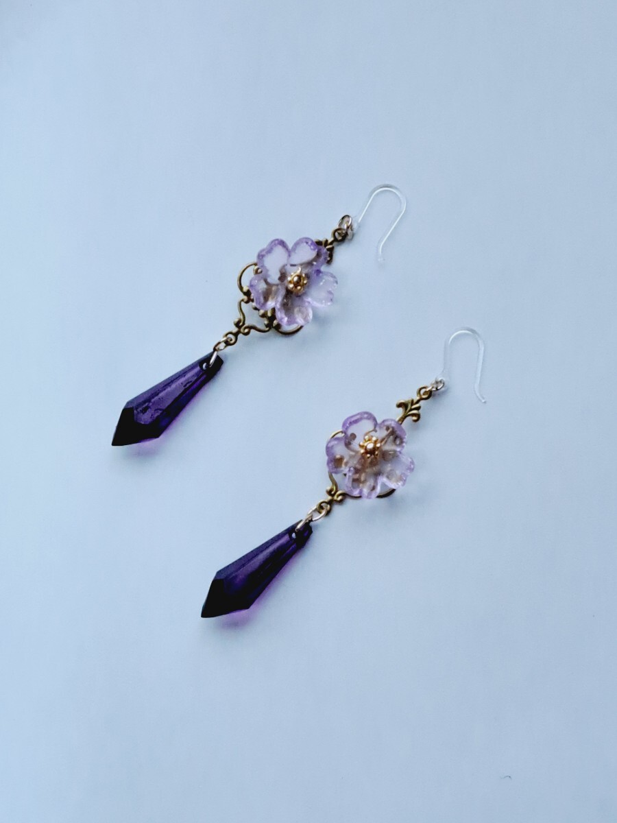 紫の花が可憐なピアス