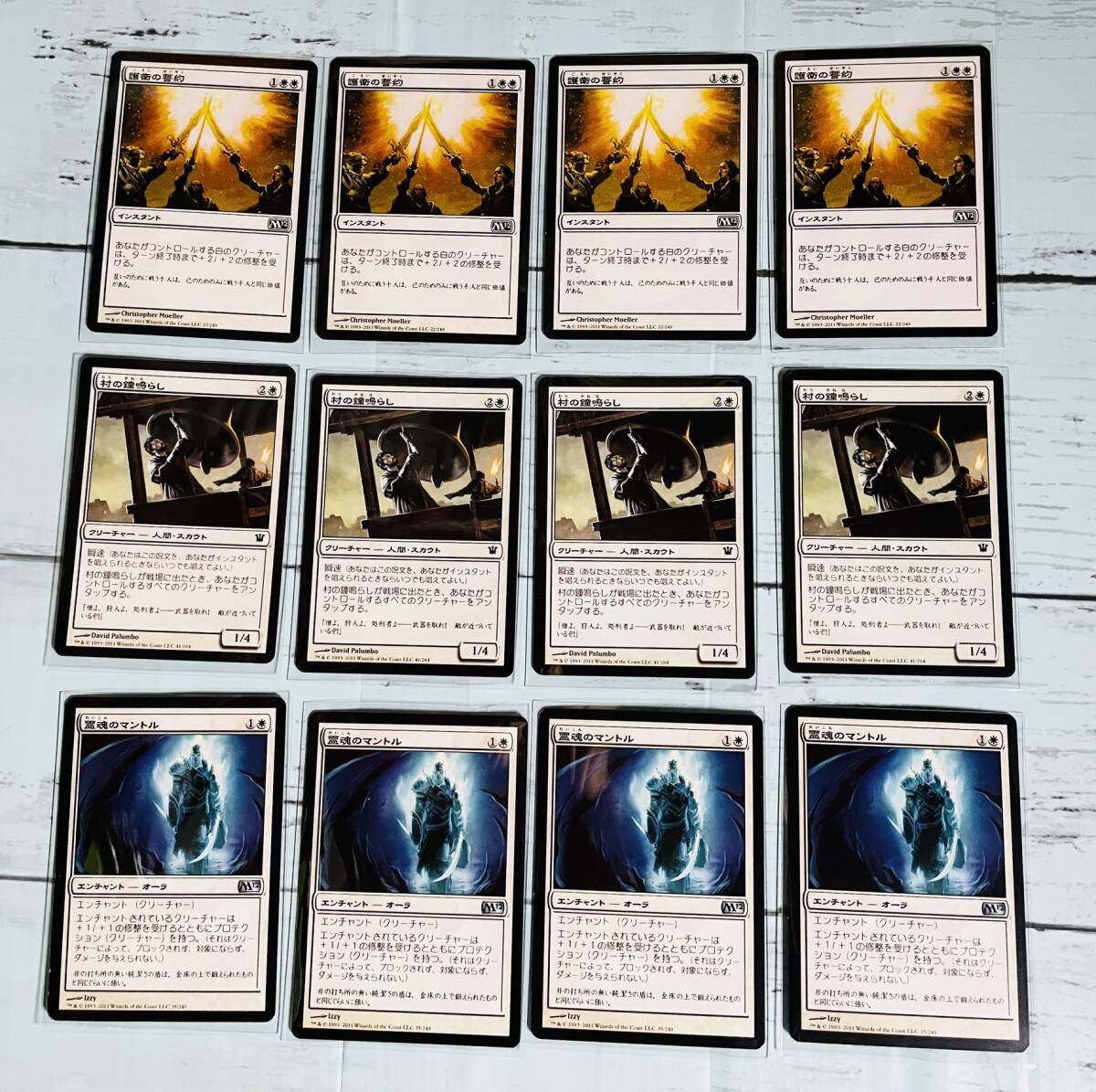 護衛の誓約/Guardians' Pledge , 霊魂のマントル/Spirit Mantle M12 , 村の鐘鳴らし/Village Bell-Ringer 各4枚セット MTG マジック