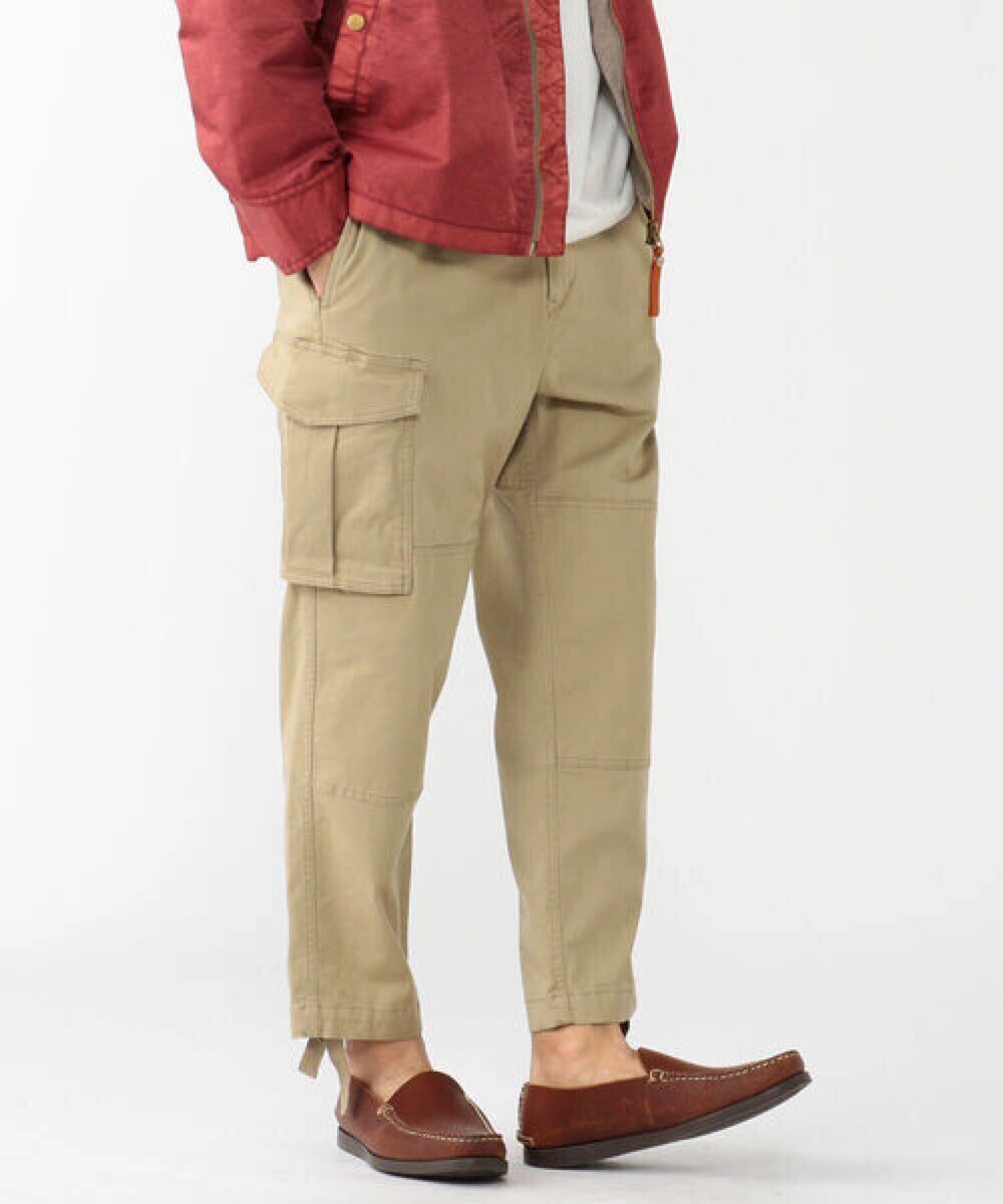 生地はワンウォッシュ仕上げのツイル生地を使い、ミリタリーパンツらしい粗野な雰囲気を演出しています。組成はストレッチ性を持たせたコットンポリウレタン。ストレスのない快適な穿き心地を実現しています。