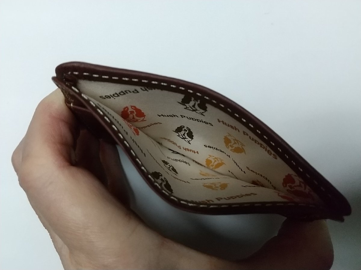 新品未使用 ハッシュパピー 本革 薄型 BOX式小銭入れ コンパクトなサイズです。内布には可愛いパピーの柄がプリントされています。格安で出品します。