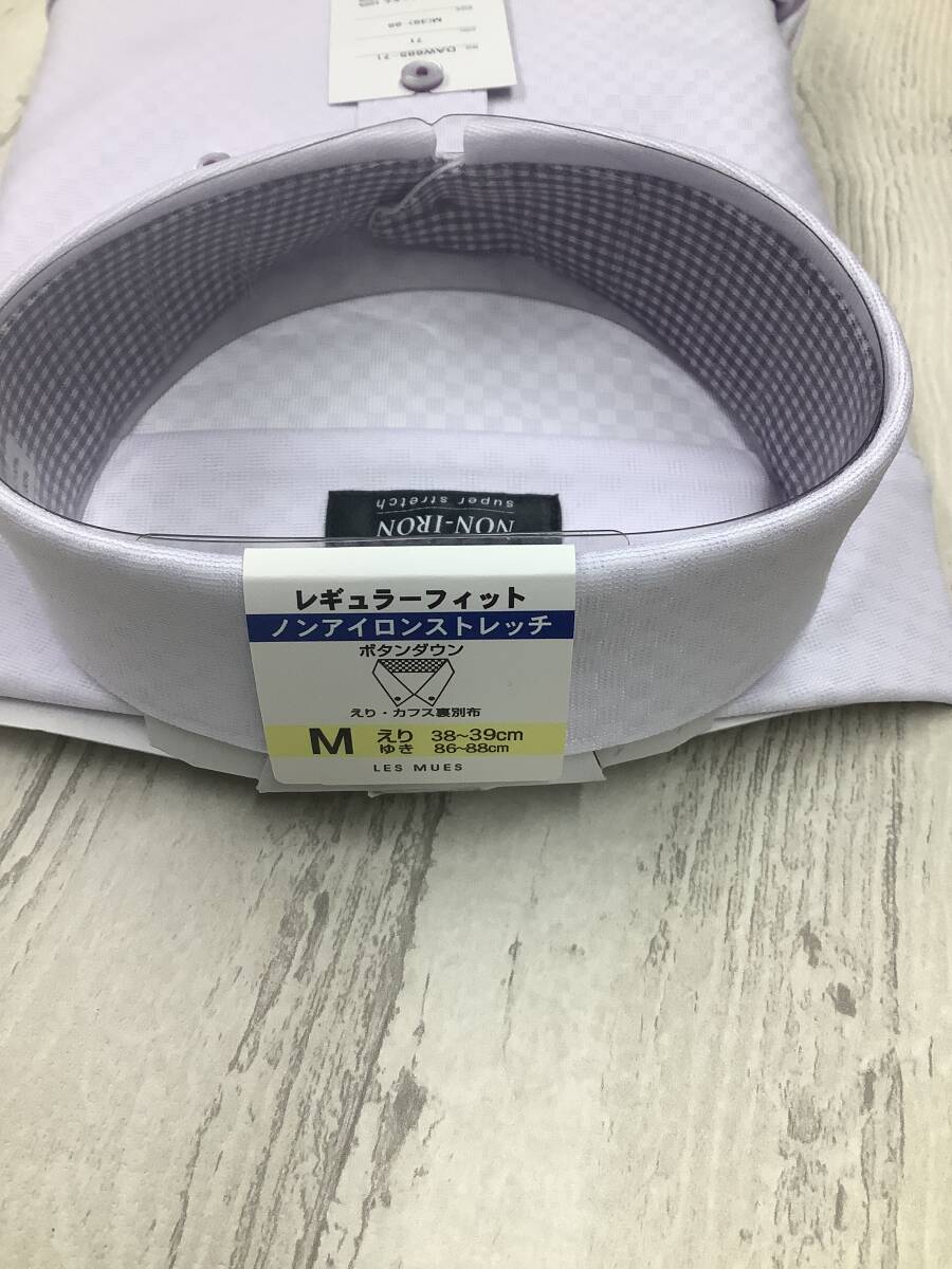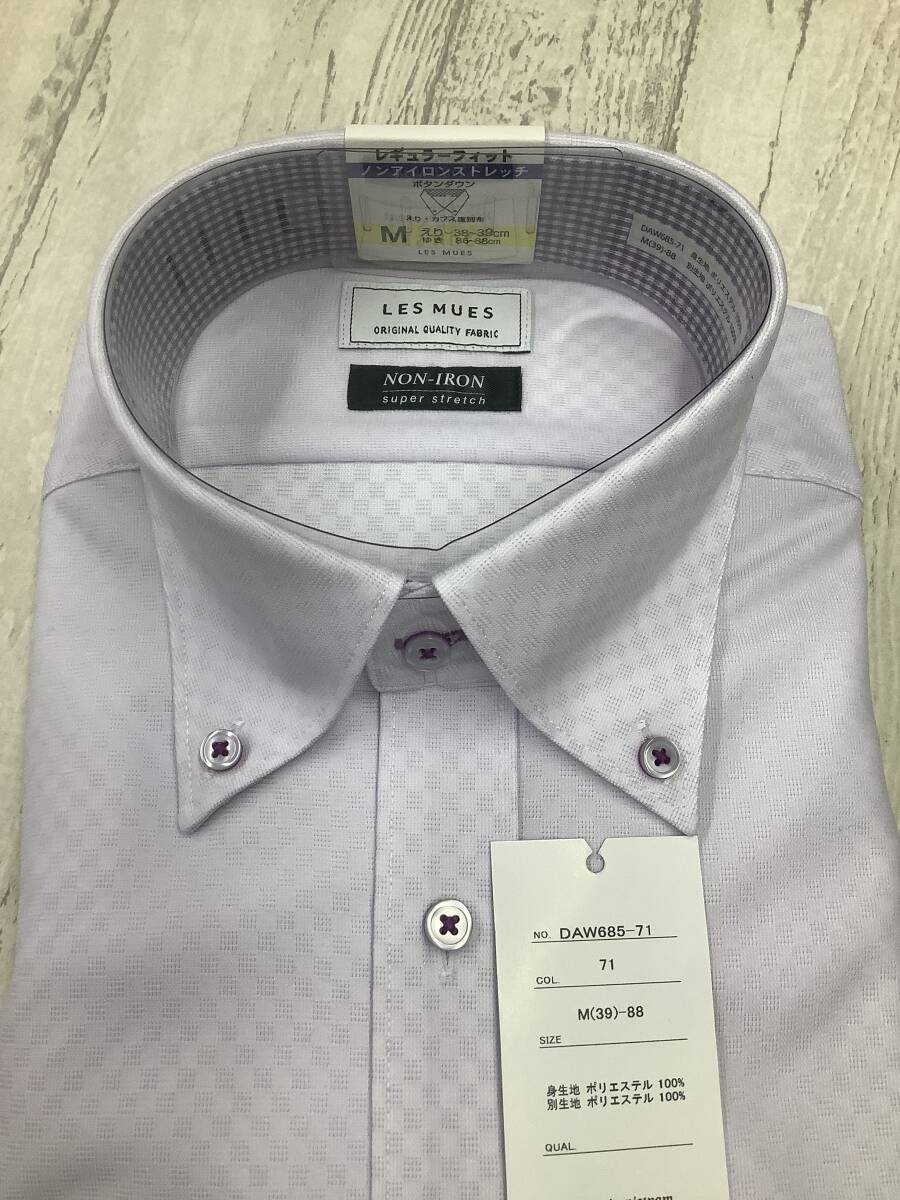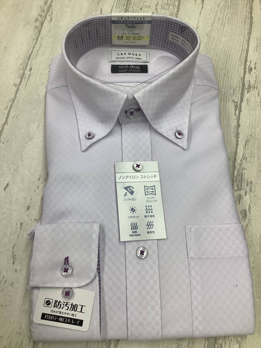 新品未使用★39-88 長袖Mサイズ ★ラベンダー系ジャガード生地ニット素材 定価4,990円 ボタンダウンドレスシャツ ストレッチ