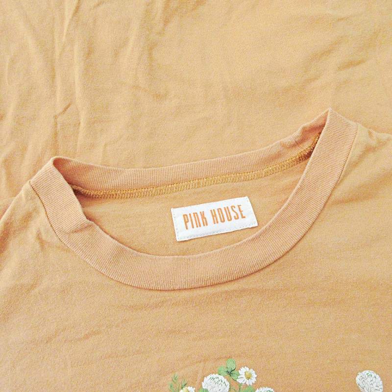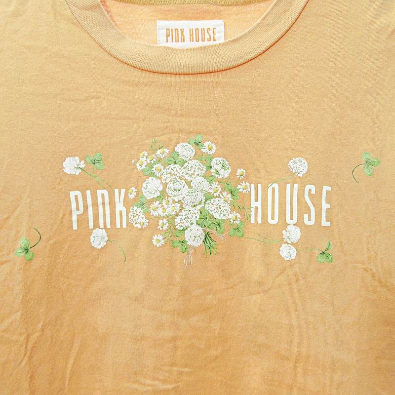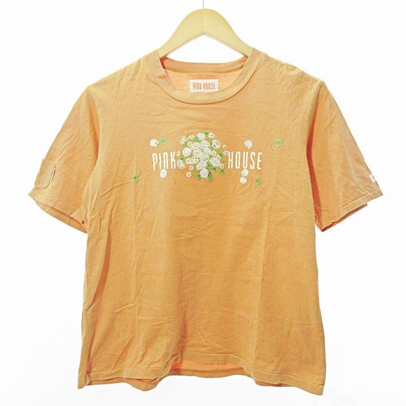 ピンクハウス PINK HOUSE 00's 白詰草 ロゴ プリント Tシャツ カットソー 半袖 花柄 L オレンジ 0313 ■GY09 レディース