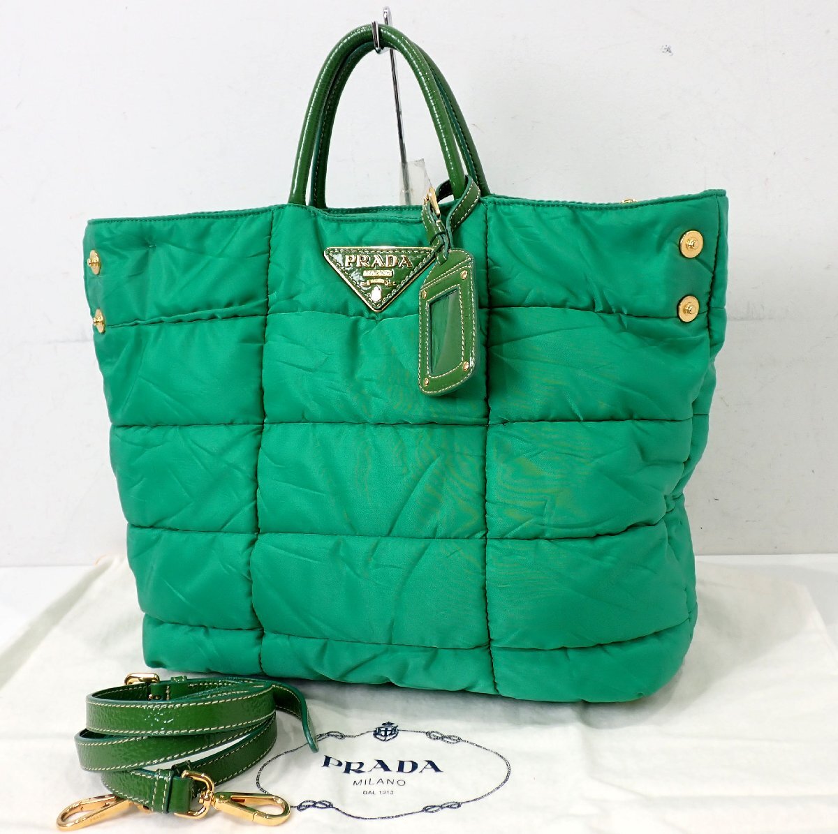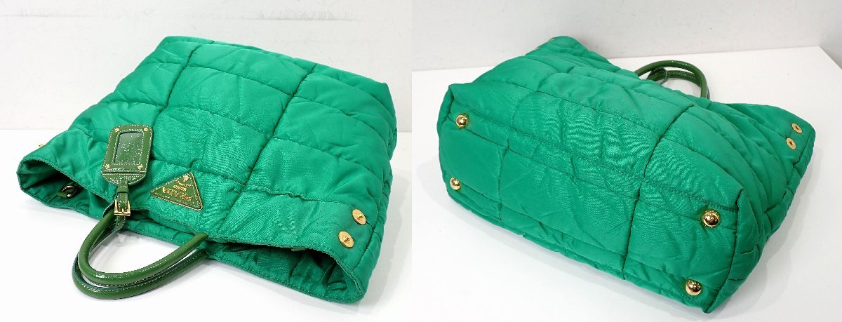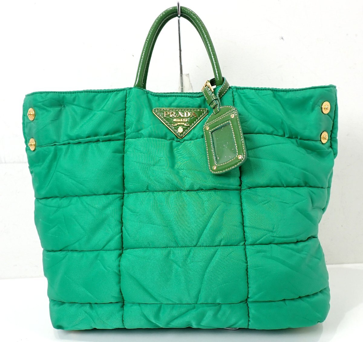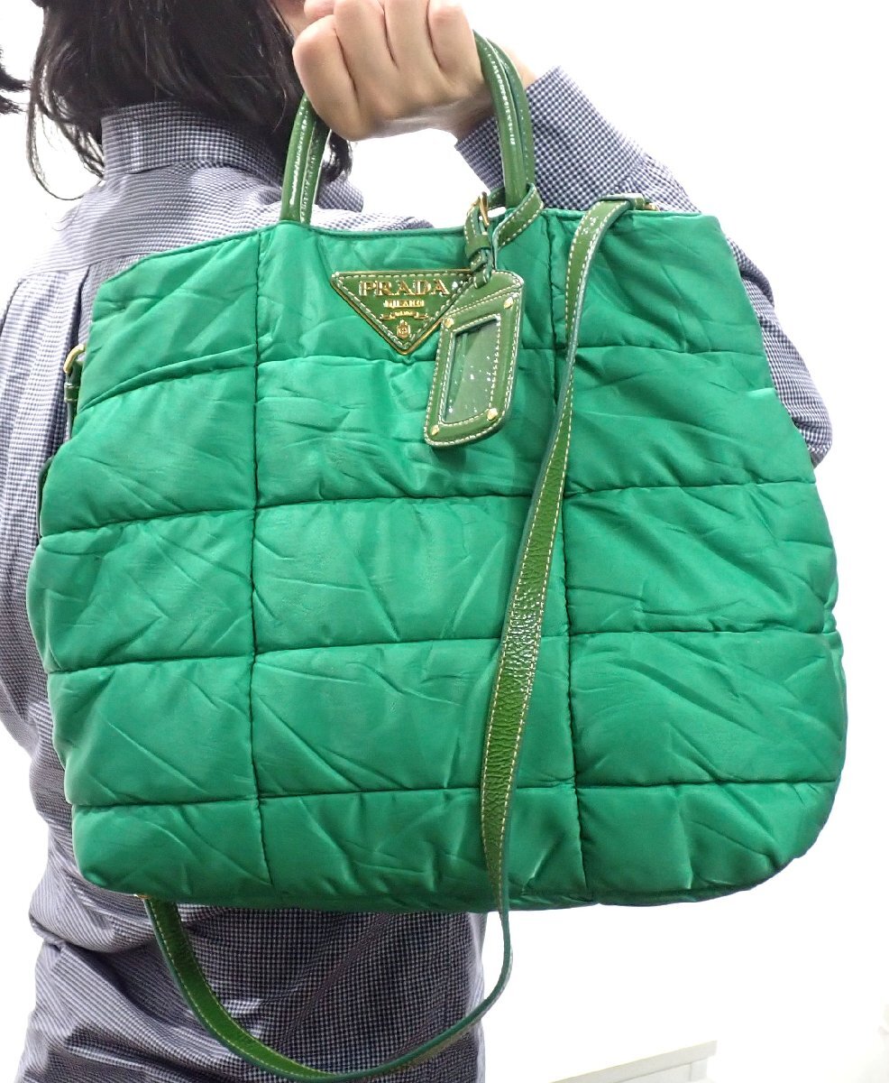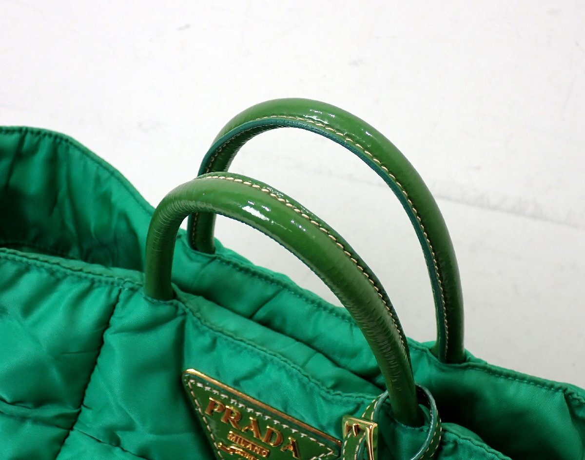 トライアングルロゴ!プラダ キルティング 2WAY トートバッグ グリーン ブリーフケース ショルダーバッグ メンズ 3243