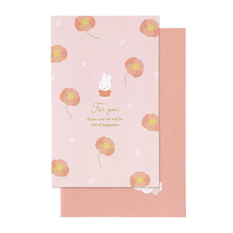 【即決】▽ミッフィー メッセージカード▽ マルアイ ブルーナ グリーティングカード 多目的 お花 フラワー ピンク 封筒付き // カ-MY2P