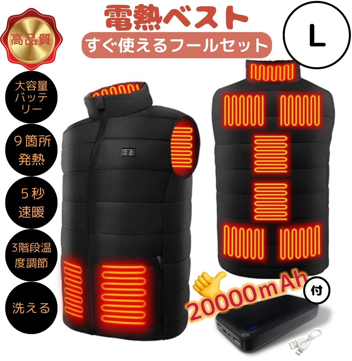 [YOTOUR] 電熱ベスト 加熱ベスト バッテリー付き 【2024新モデル・9箇所発熱・ 20000mAhバッテリー付き】 日本製ヒーター 5秒速暖 USB給電 急速発熱 3段階調温 前後独立 軽量 暖房ウェア ヒートジャケット 電熱ウェア ヒートベスト 防寒ベスト 防寒着 省エネ 加熱服 水洗い 洗濯可 防寒対策 防風 屋外作業 男女兼用 メンズ レディース