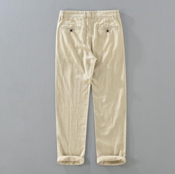 新品・未使用 リネンパンツ メンズ サマーパンツ 麻混ん ロング パンツ スラックス 春夏服通気 カジュアル ズボン【1353】カーキ W30
