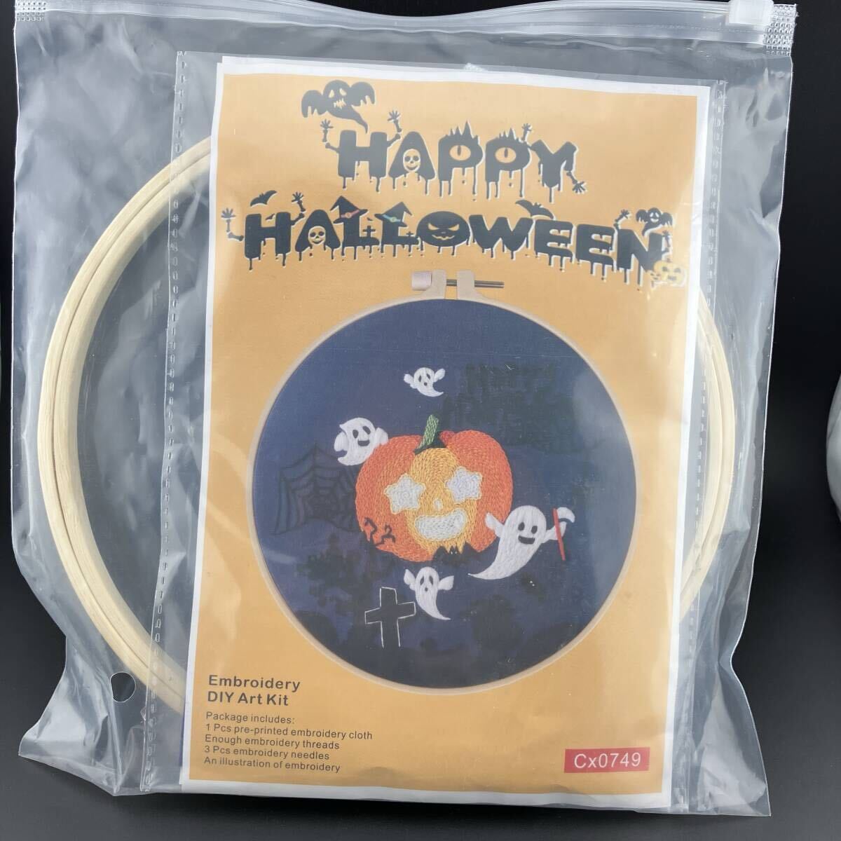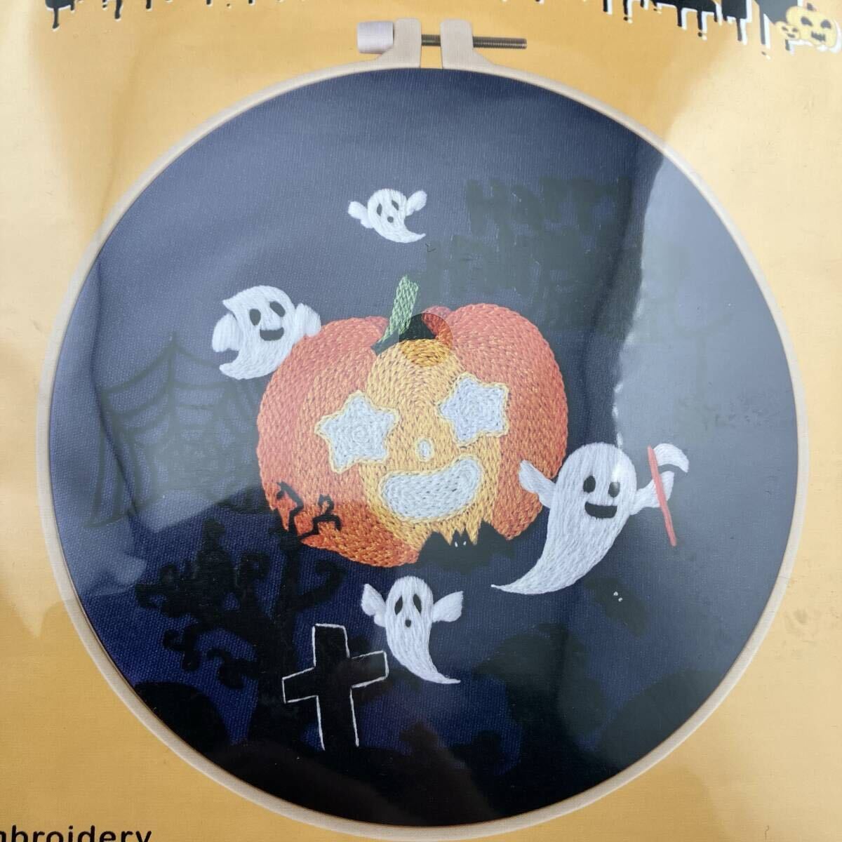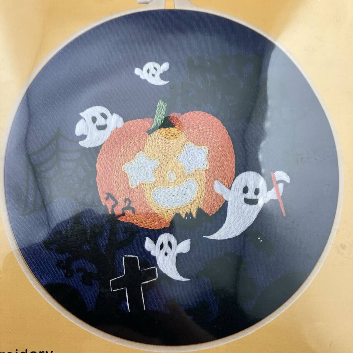 【新品】迅速発送◆刺繍キット◆ハロウィン カボチャ オバケ◆枠付 手芸 直径約20㎝