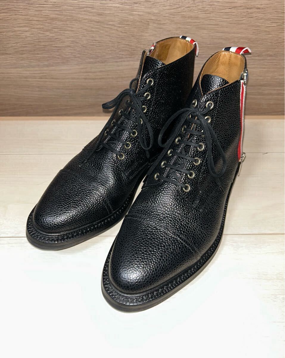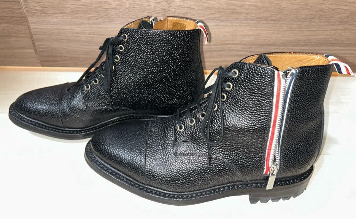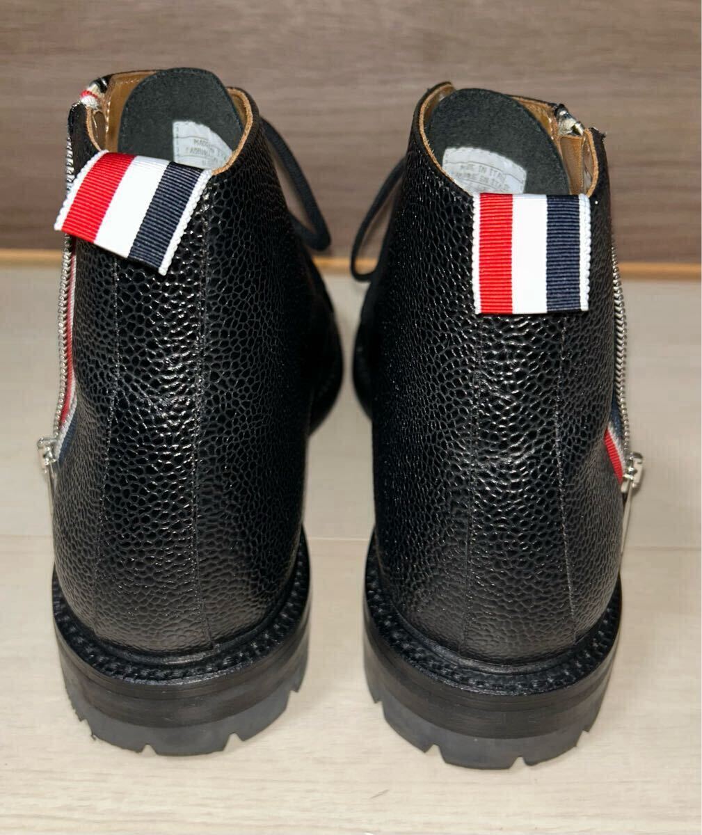着用2回のみ 正規 THOM BROWNE サイドジップ レザーブーツ ブラック US8 EU42 トムブラウン グレインレザー シボ革