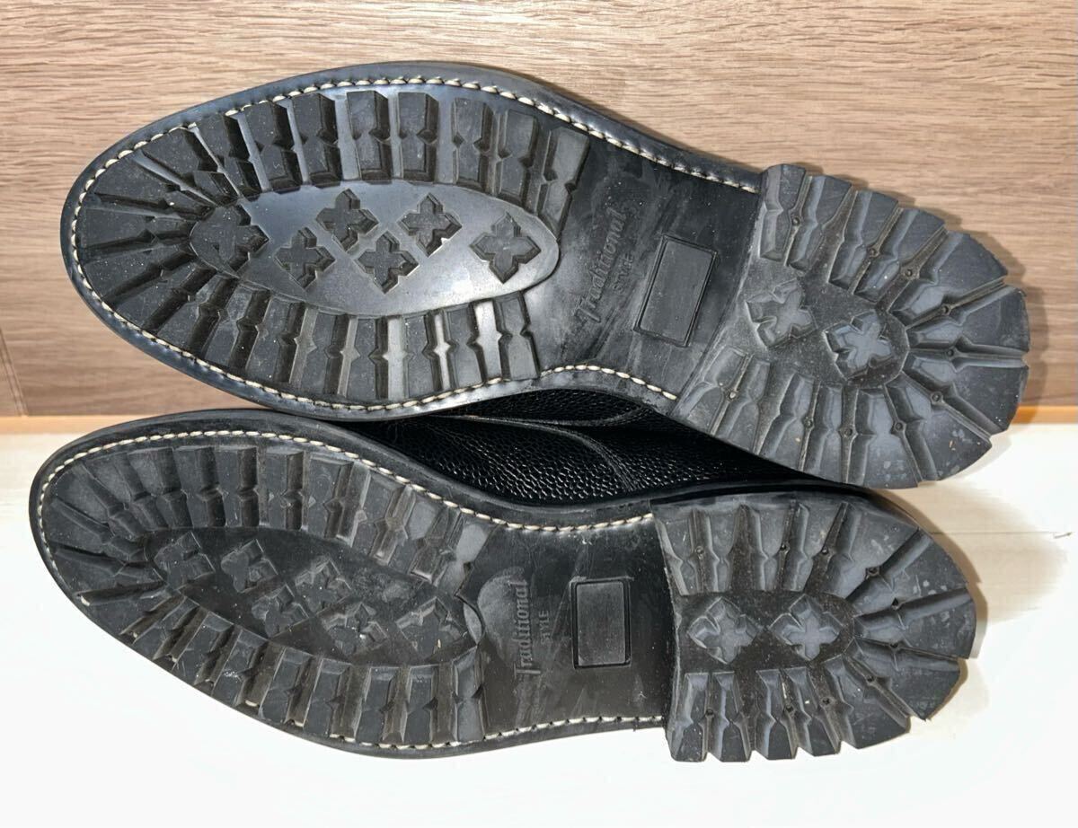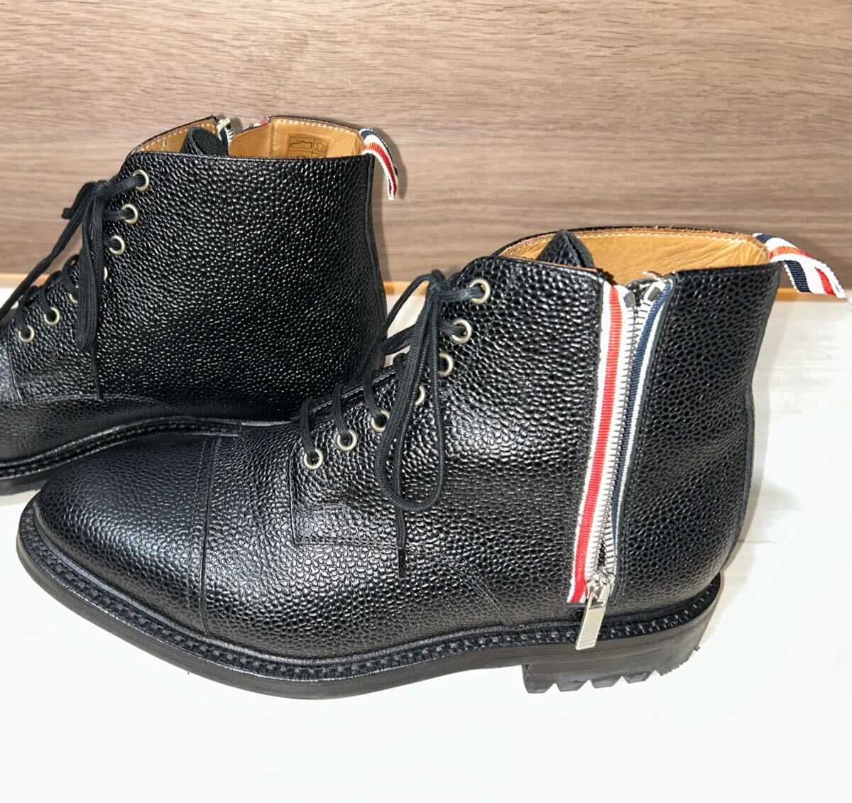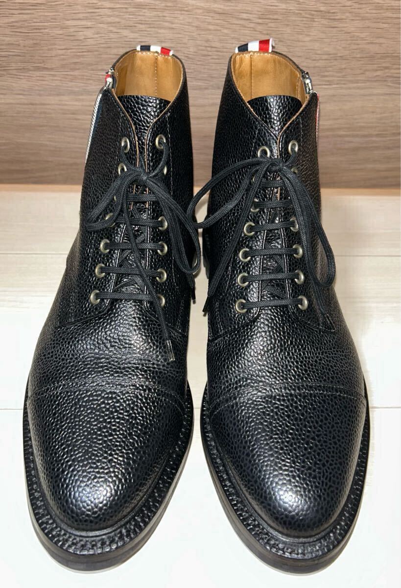 着用2回のみ 正規 THOM BROWNE サイドジップ レザーブーツ ブラック US8 EU42 トムブラウン グレインレザー シボ革