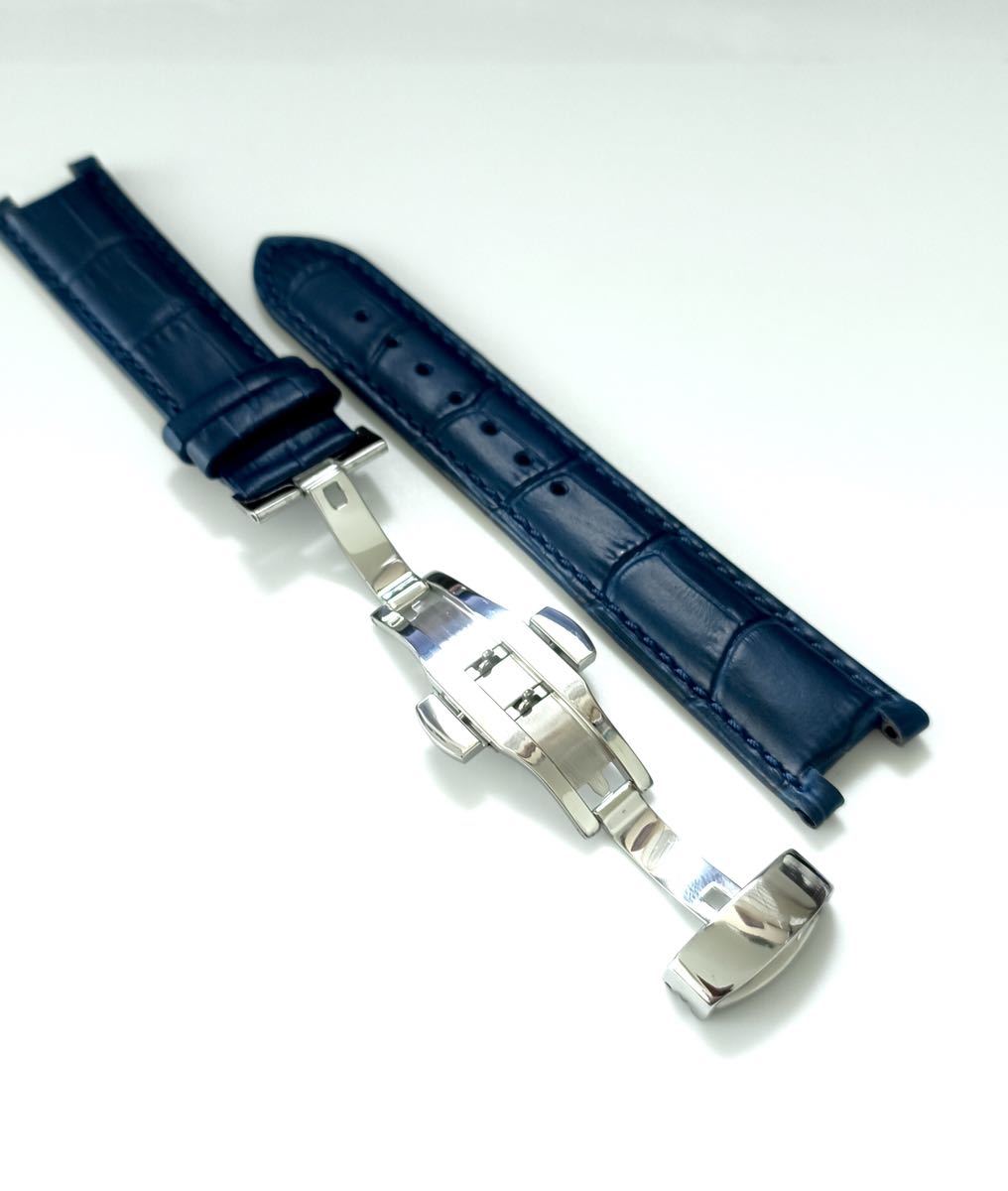 ワンプッシュで脱着可能なDバックル付きレザーベルトです。