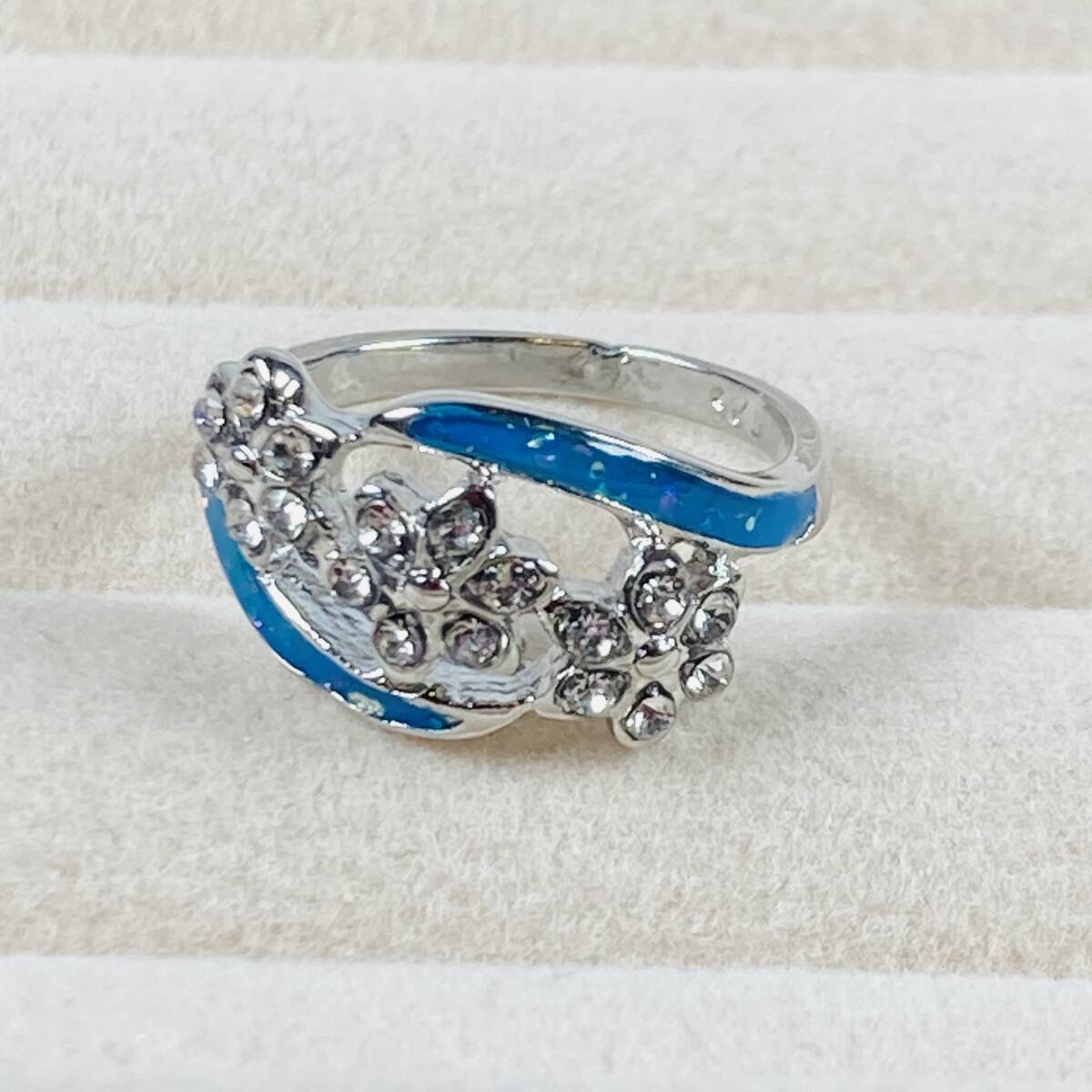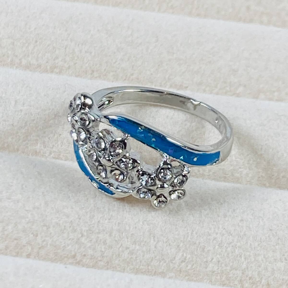 865-6A 新品 未使用 レディース リング 指輪 ハワイアン 花 フラワー 上品 ハワイ 可愛い オパール ブルー ギフト 人気 大人 エレガント