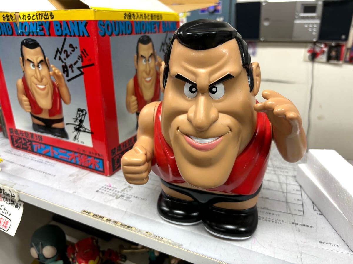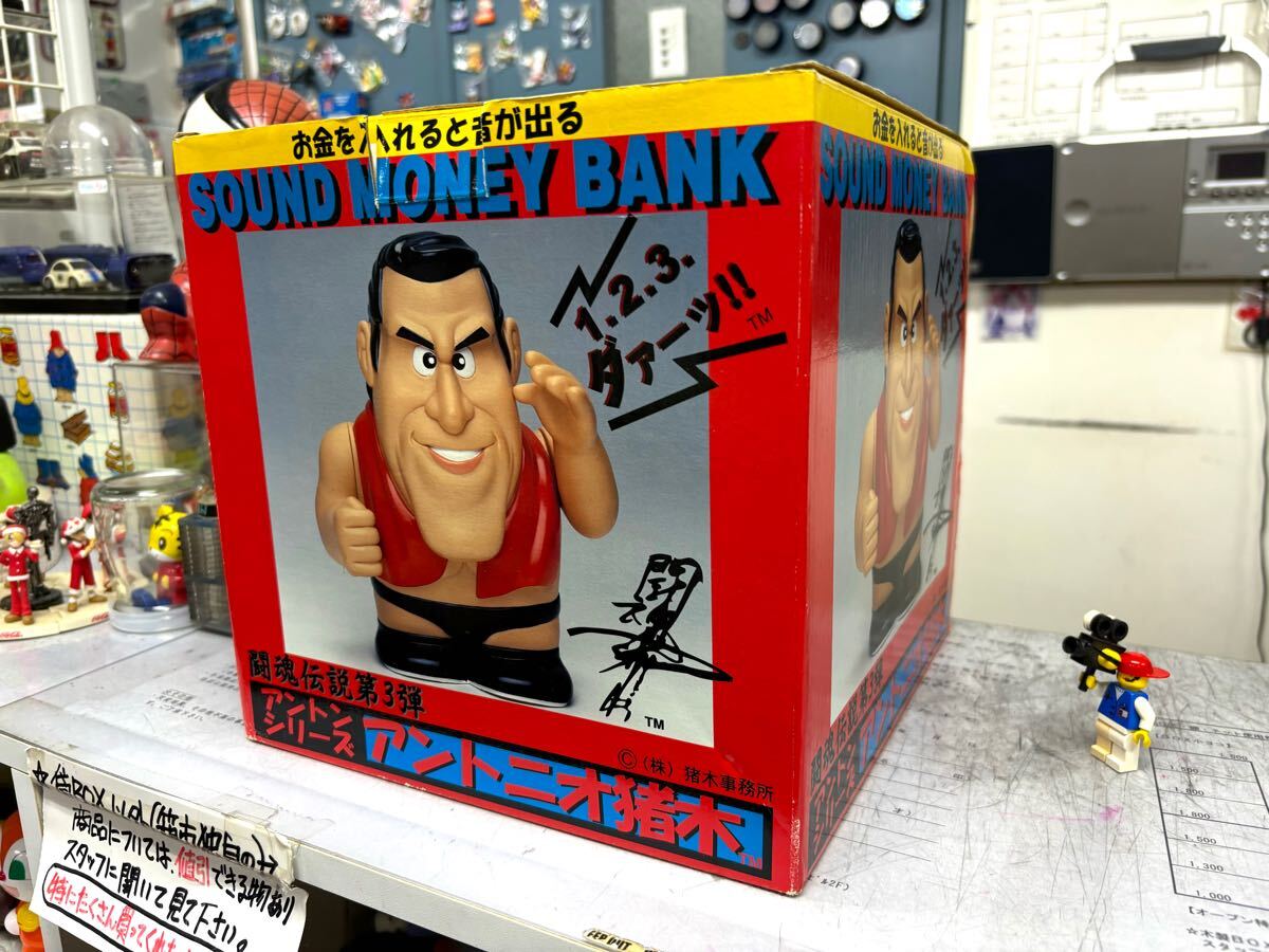 ●預かり保管品(箱入り息子)未使用●1、3、枚目画像ご覧の通りの激レアで迫力、今や希少なサウンド貯金箱『アントニオ猪木さん』1体(箱入り)の出展です。★(極端に神経質な方、説明文・自己紹介欄読めない方、連絡・送金ルーズな方々は、是非通り過ぎて頂けますようよろしくお願いしておきます。)※(存在感抜群の凄く可愛くて珍しいお品ですが、レトロ品です。)・・・・・今後の入手はかなり困難を極めそうです。。