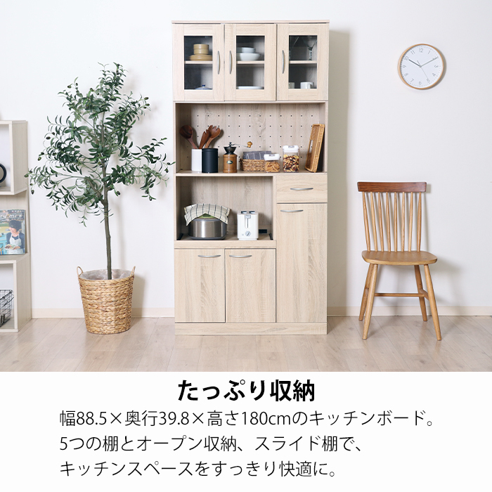 キッチンボード 幅90cm 食器棚 レンジ台 スライド棚 北欧 おしゃれ FGB-0685 FGB-0685
