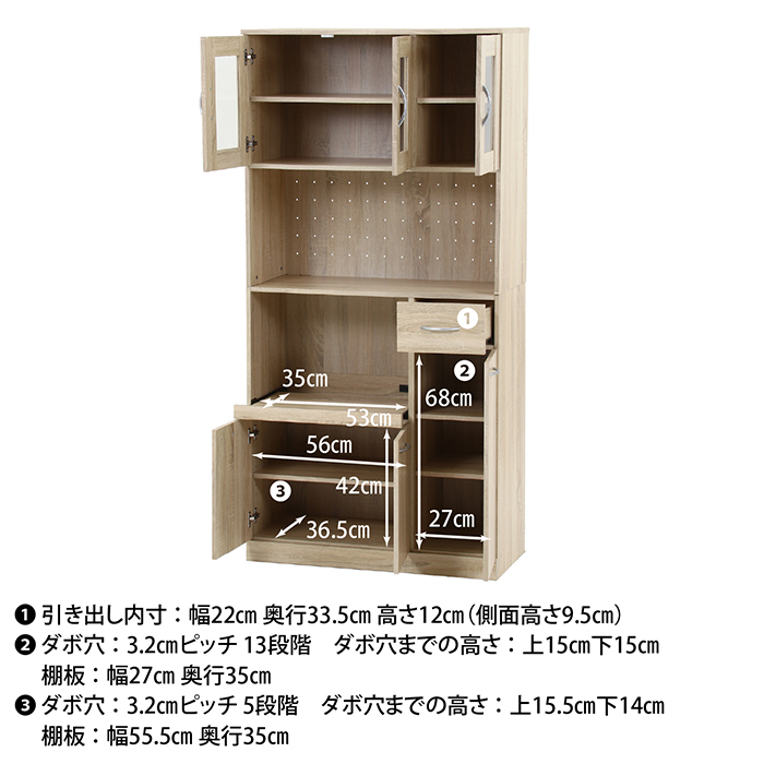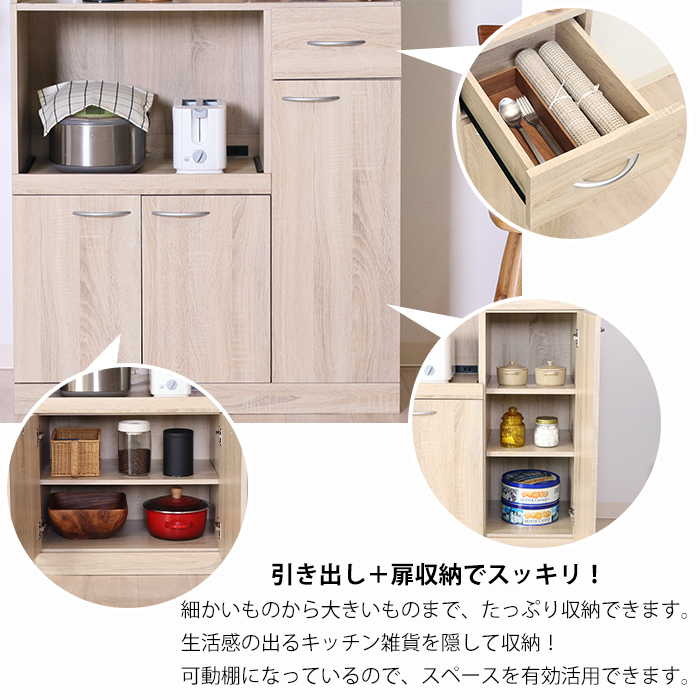 また、高さ調整できる可動棚が一枚付いており、食器を無駄なく収納できます。