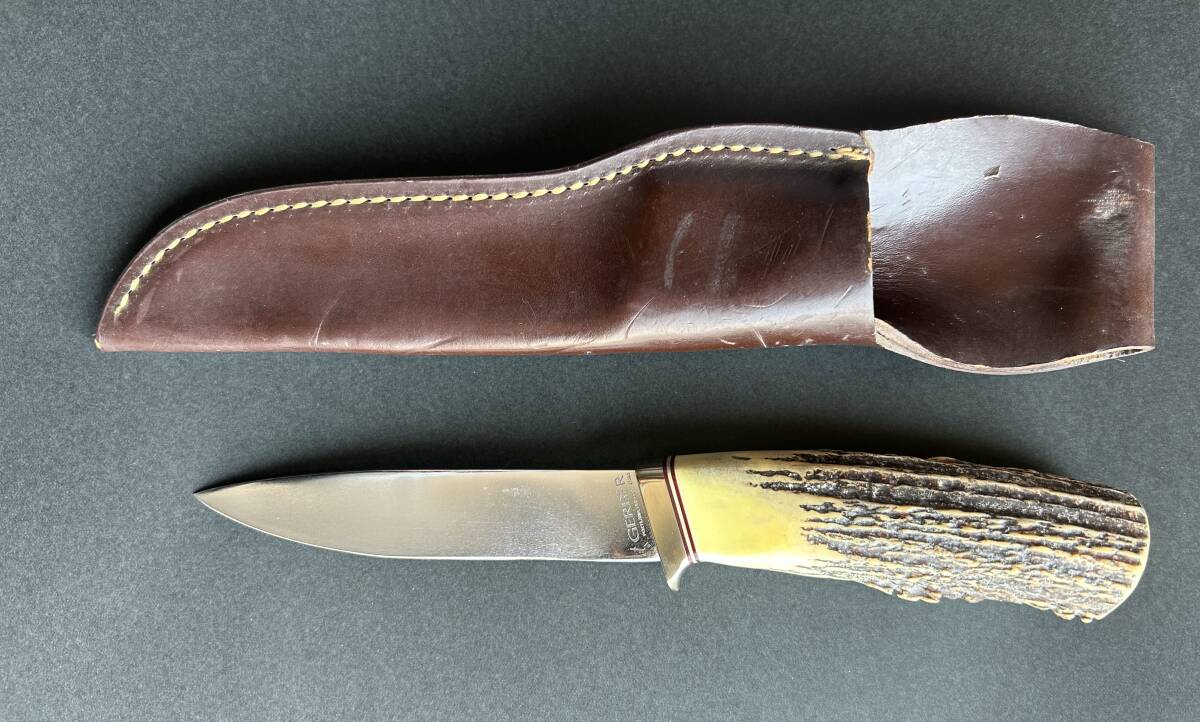 観賞用として保存。取っ手は鹿の角です。ケースについては少々傷あります。ナイフ自体に傷はありません。写真が全てです。