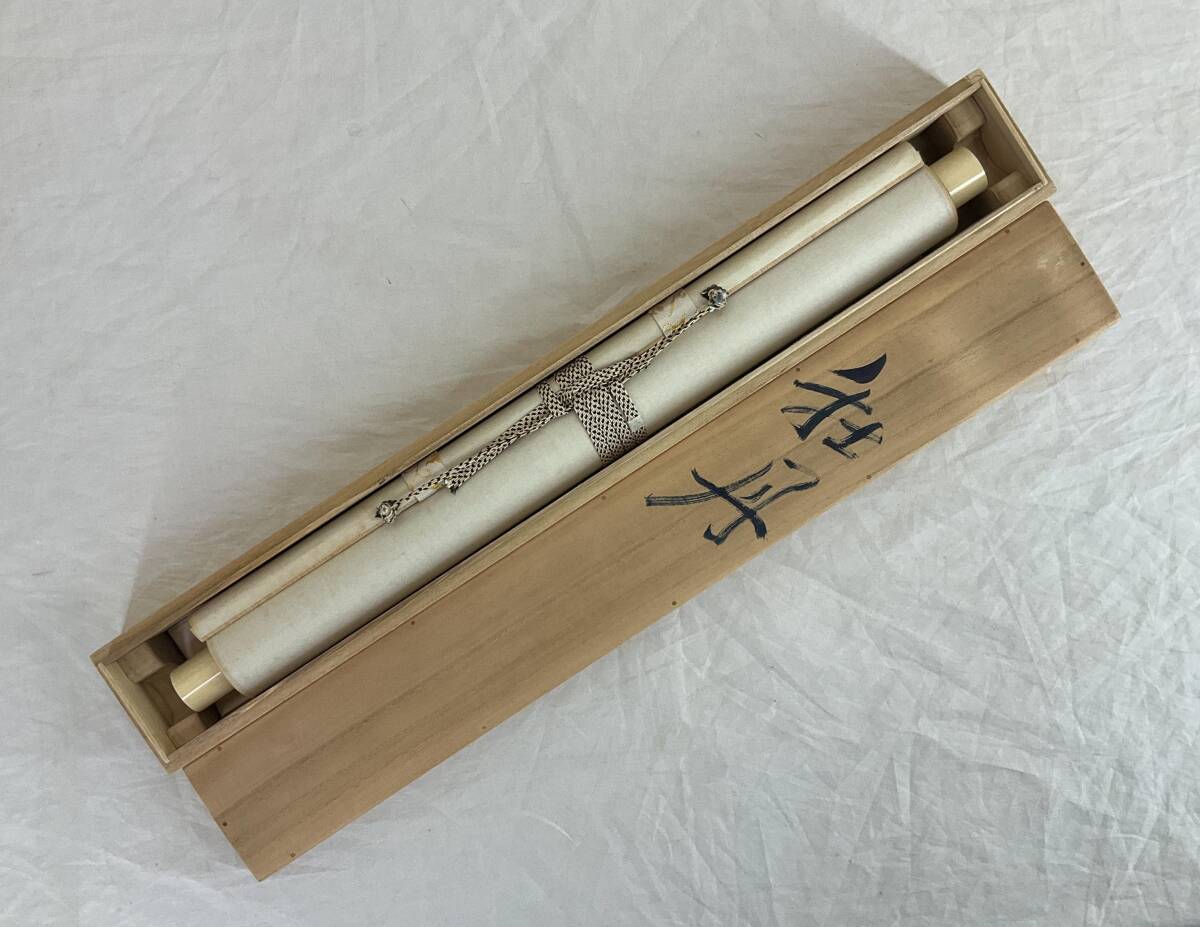 古い掛け軸は軸先を固定している接着剤が弱り、輸送途中の衝撃で軸先が外れてしまう場合がございます。