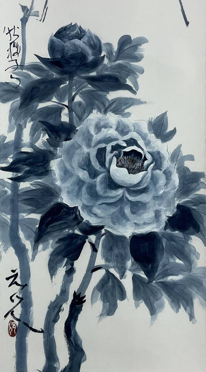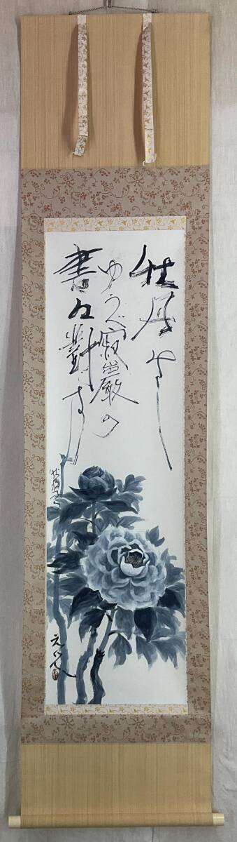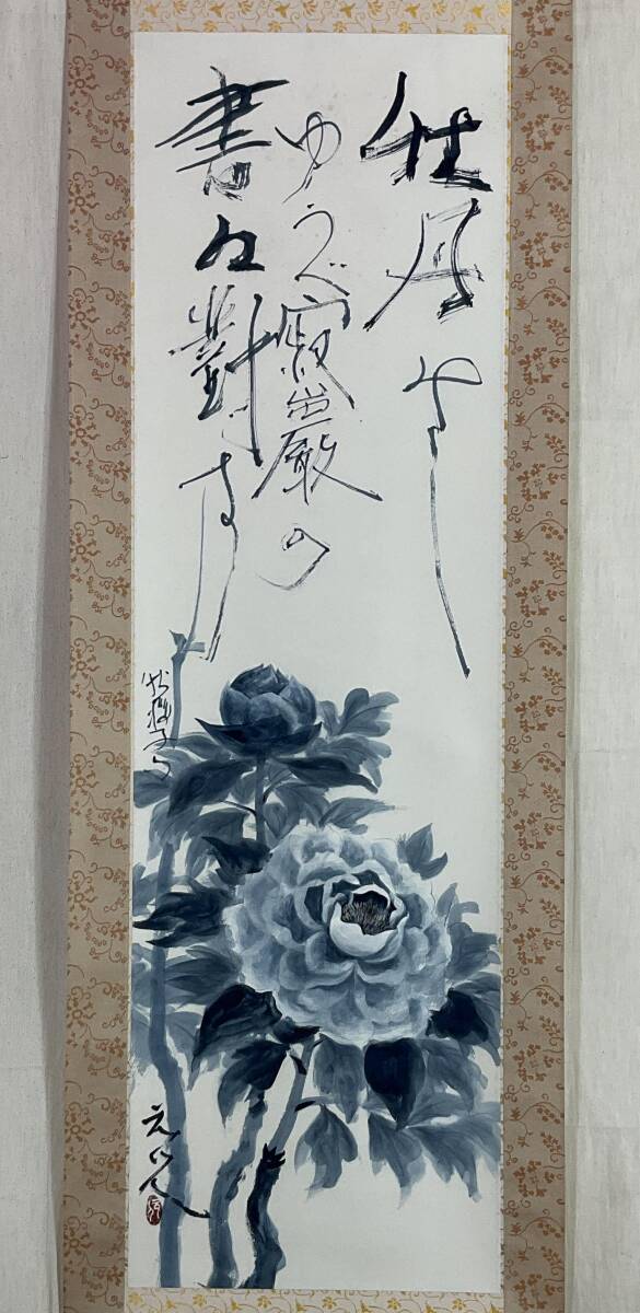 【真作】《掛軸》杉原元人 牡丹 共箱 日本画 師・児玉希望 日展 三重