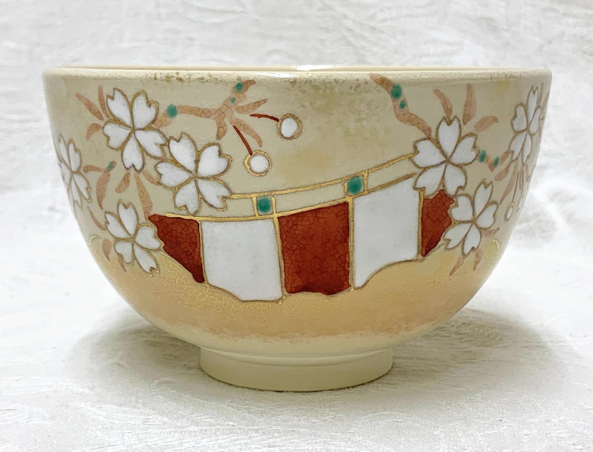 16783/京焼 観桜 茶碗 抹茶椀 橋本紫雲 栞付 未使用 紙箱 茶器 茶道具