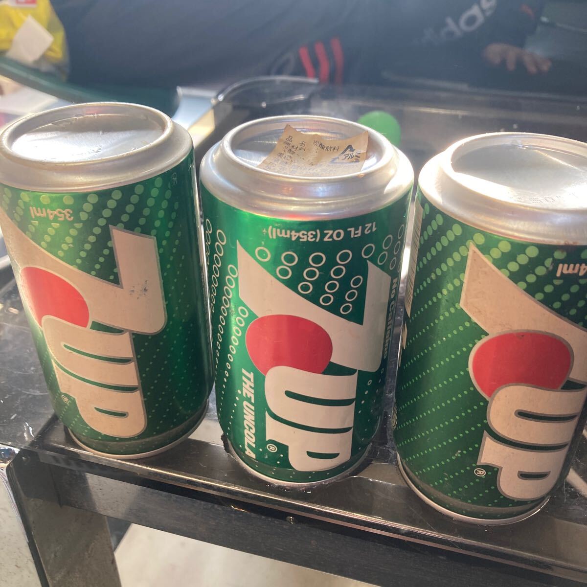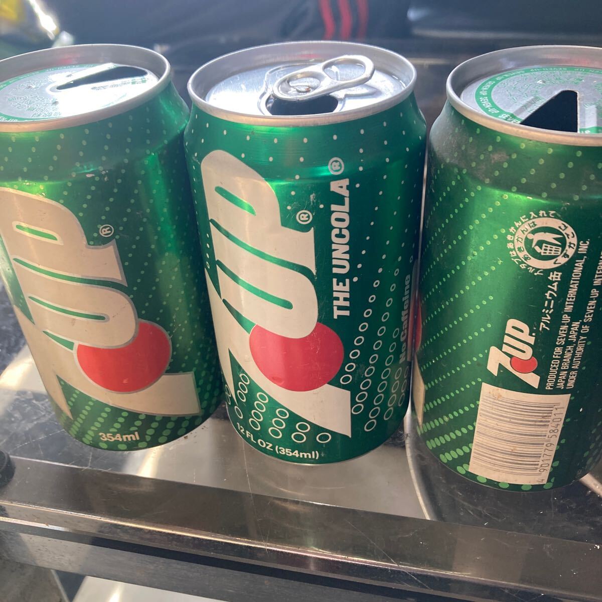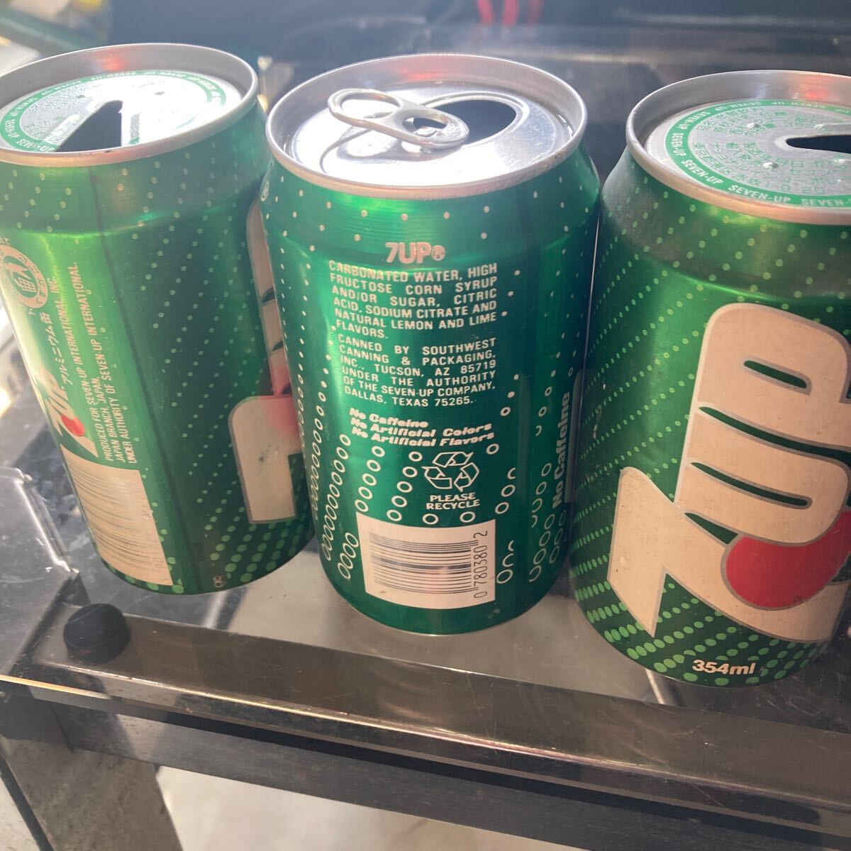 セブンアップ好きな方いかがですか?デザイン最高です。アメリカ製 アルミ缶3個セットです。