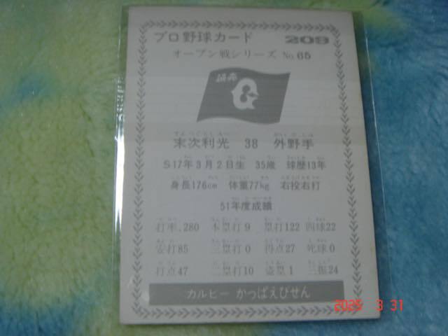 カルビー '77年 プロ野球カード 『オープン戦シリーズ』NO.209(末次/巨人) 黒版 美品