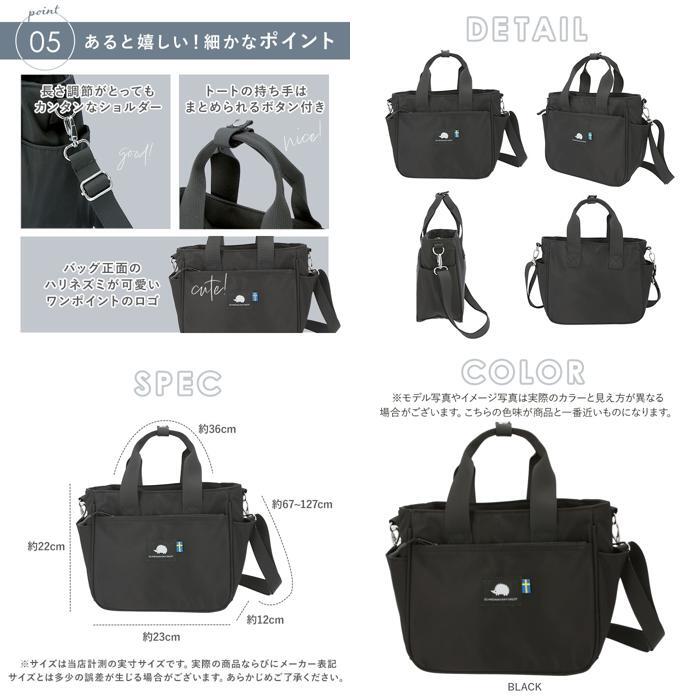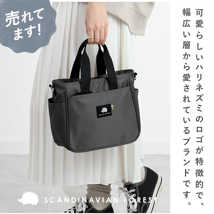 商品説明 | ・・北欧ブランド「SCANDINAVIAN FOREST」から、デイリーユースにぴったりな2WAYショルダートートバッグが登場。 ・落ち着いた色合いのカラーに、フロントに配置されたお馴染みのハリネズミロゴがアクセント♪ ・手持ちのトートバッグとしてはもちろん、長さ調節可能なショルダーベルトを取り付けて、ショルダーバッグとしても使える2way仕様◎(※ショルダーベルトは取り外し可能です。) ・メインポケット開口部はファスナー式。バッグの内側が見えてしまう心配がなく、プライバシーをしっかり確保。 ・内側は長財布やミニポーチなど、お出かけに必要な荷物がまとめて入るサイズ感。ファスナーポケット×1、オープンポケット×2、ペットボトルホルダーポケット×1を装備。 ・前面には頻繁に出し入れするスマートフォンやパスケース、ハンカチなどの収納にぴったりなファスナーポケットを配置。 ・両側面にもオープンポケットが1つずつ付いており、機能性は抜群◎ ・本体ナイロン生地に撥水加工を施しているので、雨の日も安心。(※繰り返し使うことで撥水効果は薄れてくる場合があります。また、完全防水ではありません。) ・コンパクトな見た目以上の収納力で、通勤バッグ、ママバッグとしてもおすすめ。 |