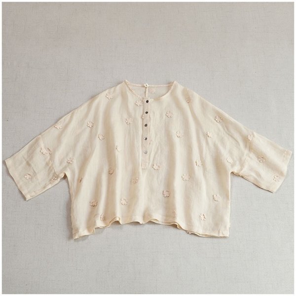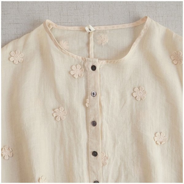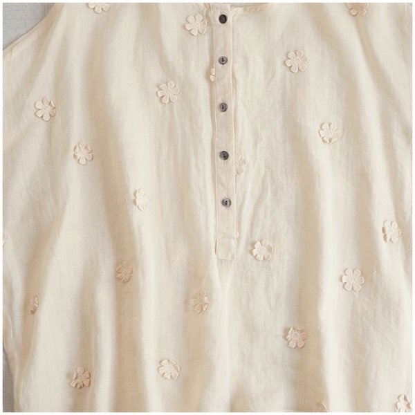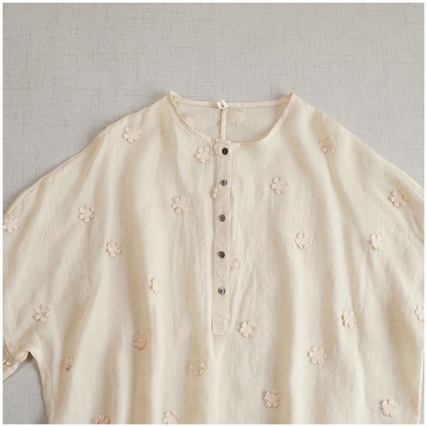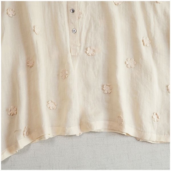 mチュニック トップス 貼り付け花柄 純色 ゆったり フリーサイズ ワイシャツ 麻100% 大人可愛 ナチュラル ベージュ系