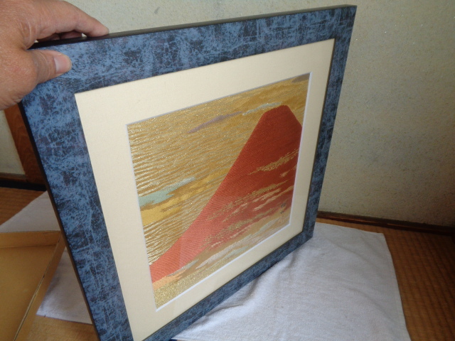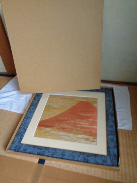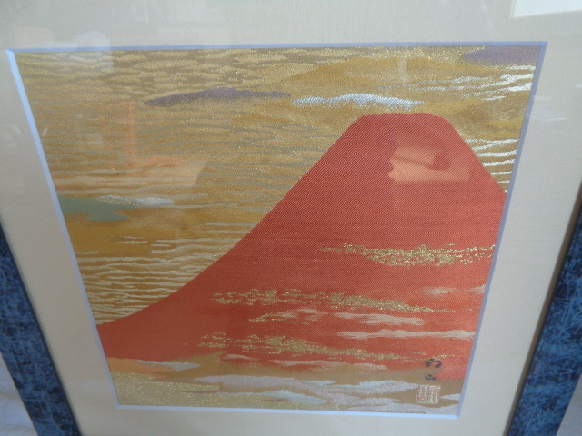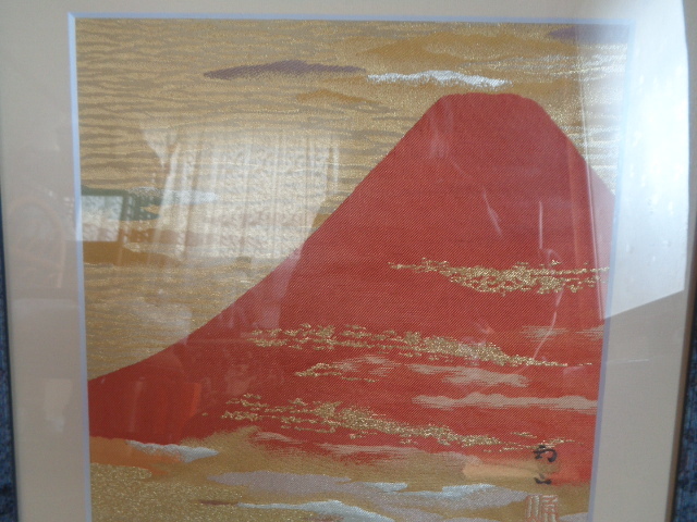 額絵-刺繍絵・布絵/赤富士・富士山/作者:雨山-木村雨山(加賀友禅)/真作/美品