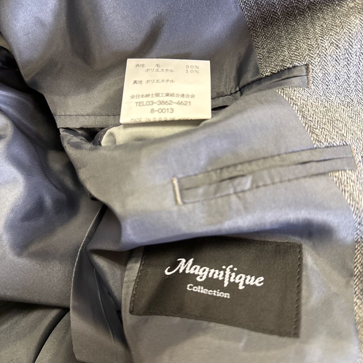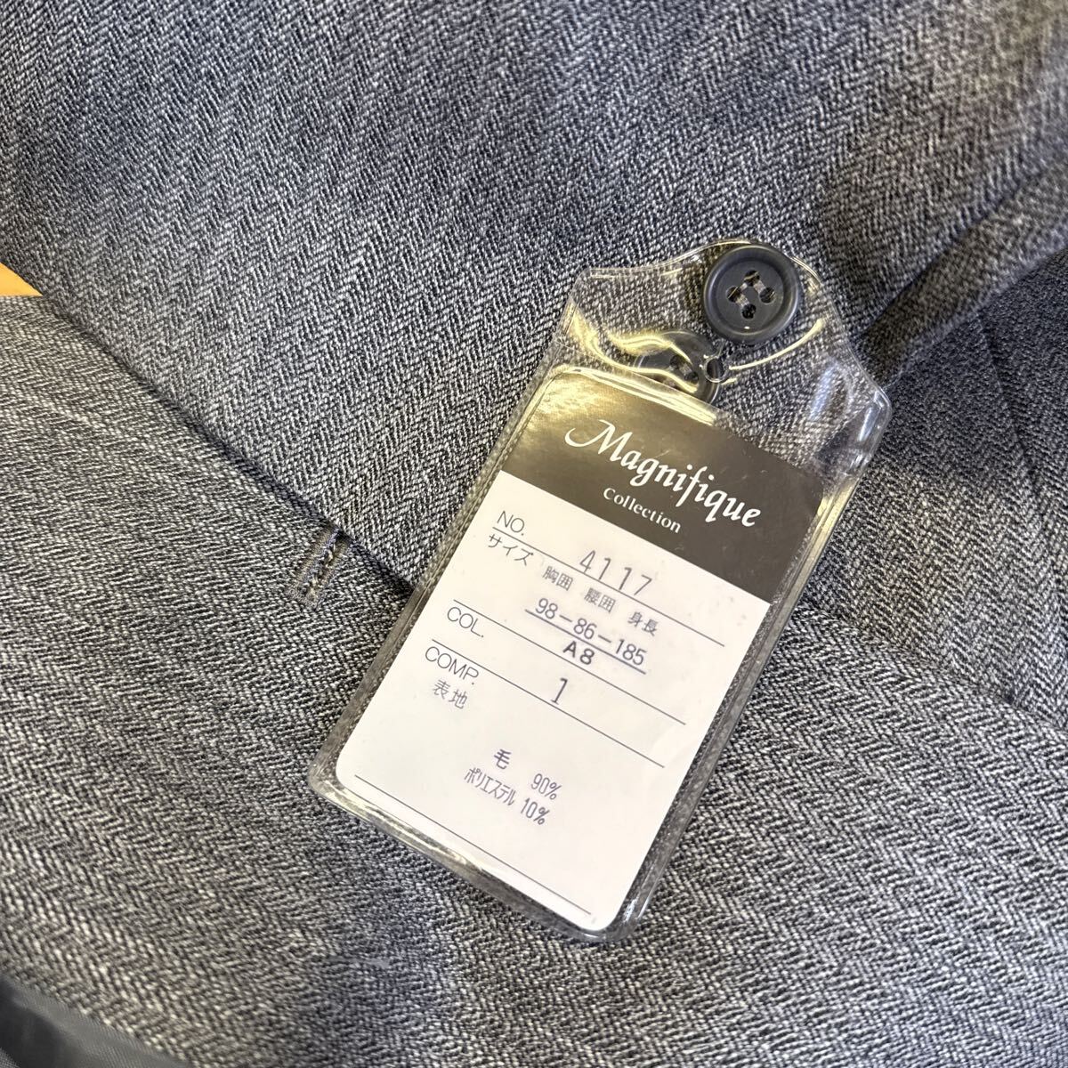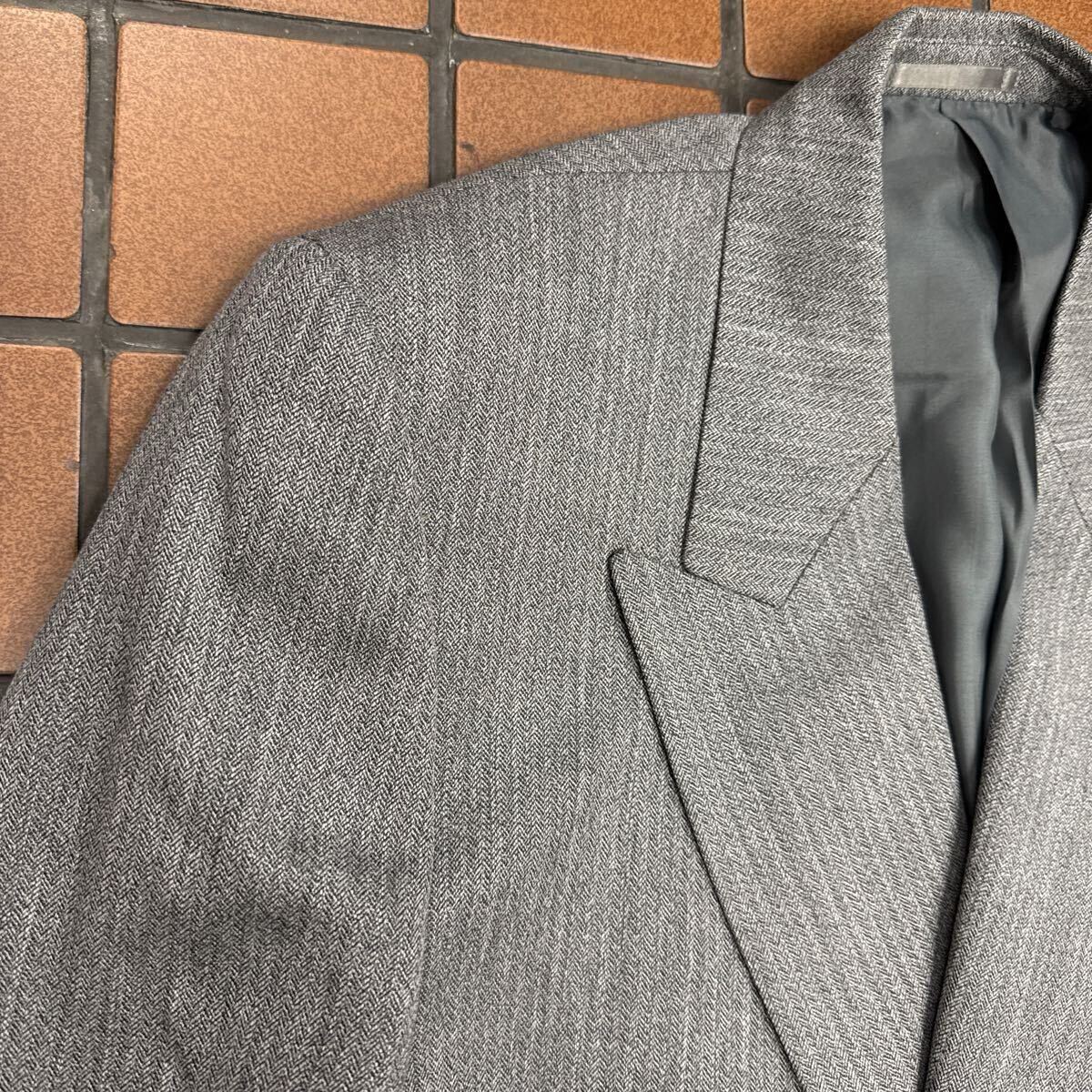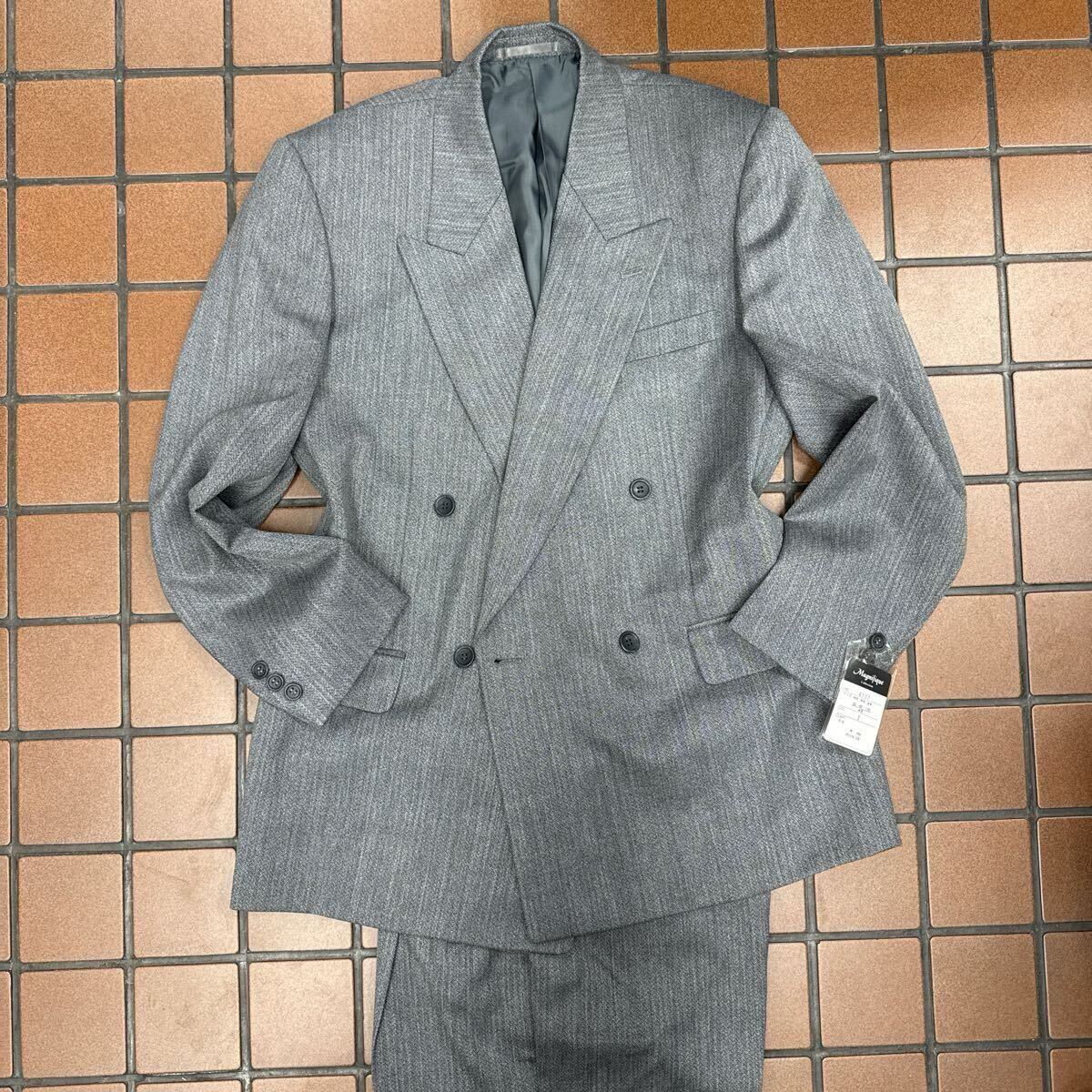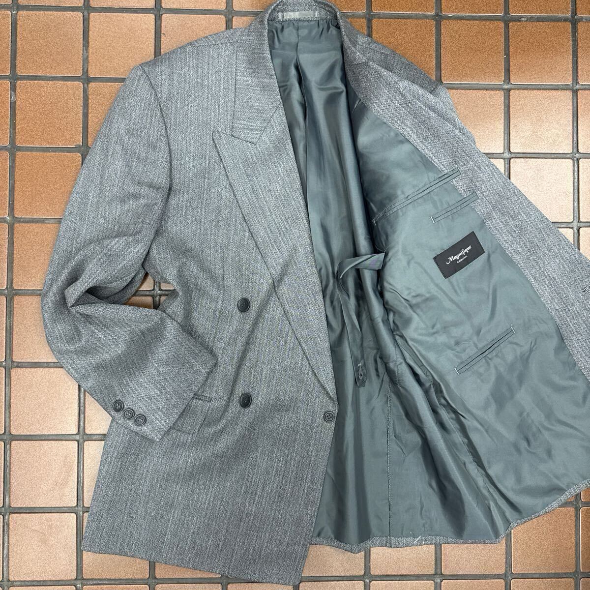 超お買い得!《激安!新品ヴィンテージ》タグ付き★高級MAGNIFIQUEダブルスーツセットアップ サイズA8 シルバーグレイ系ヘリンボーン織柄