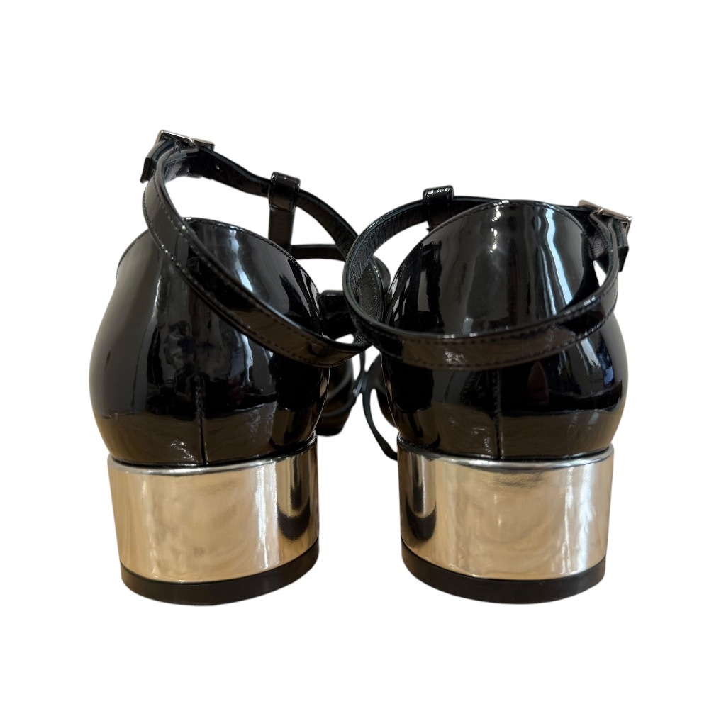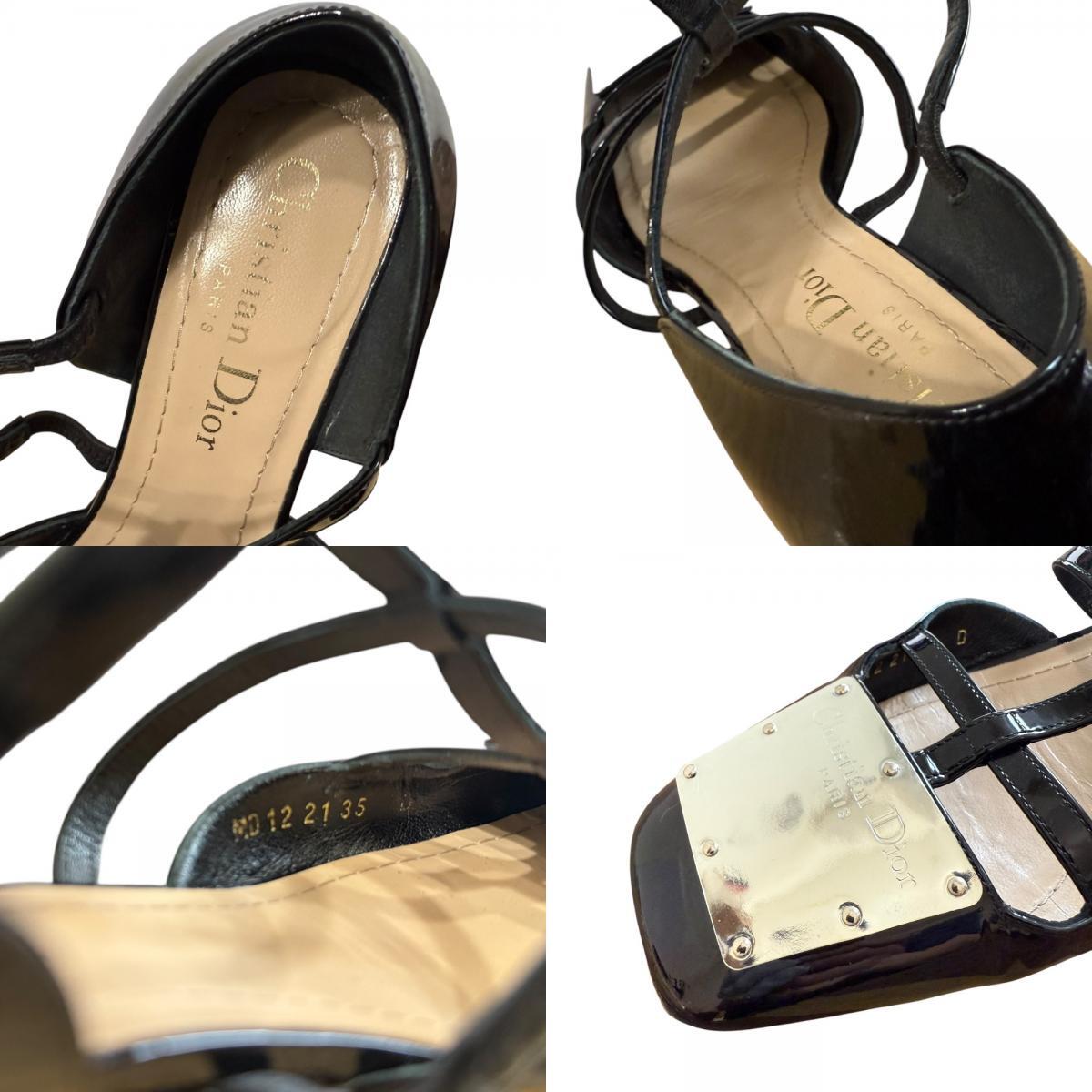 商品名:Christian Dior クリスチャンディオール パテントレザー ローヒール ストラップサンダル パンプス 35D 22cm相当 ブラック