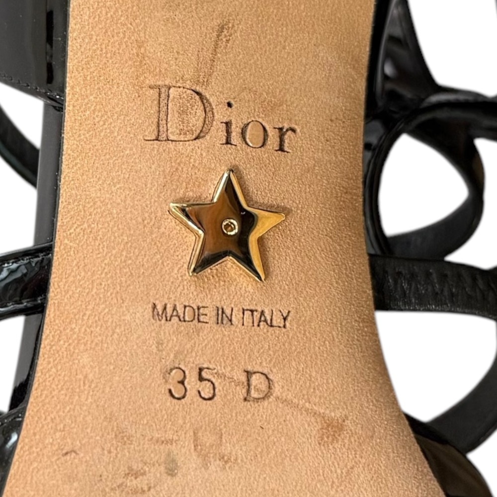 美品 Christian Dior クリスチャンディオール パテントレザー ローヒール ストラップサンダル パンプス 35D 22cm相当 ブラック