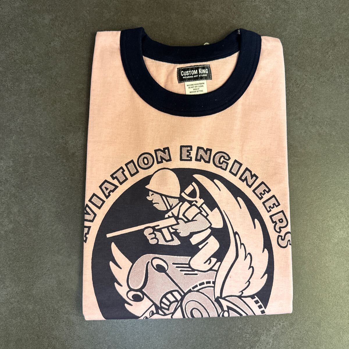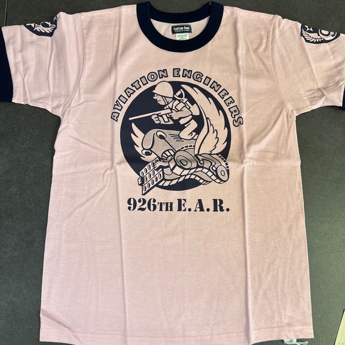 CUSTOMKING/Tシャツ/カスタムキング/新品タグ付き/AVIATION ENGINEERS/ピンク×ネイビー