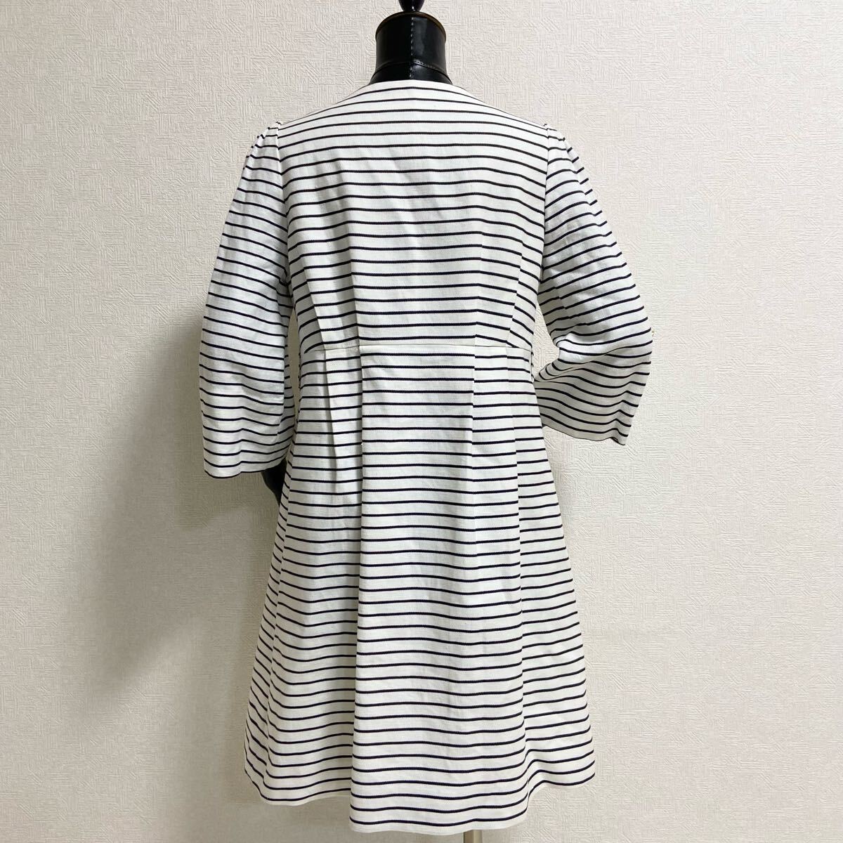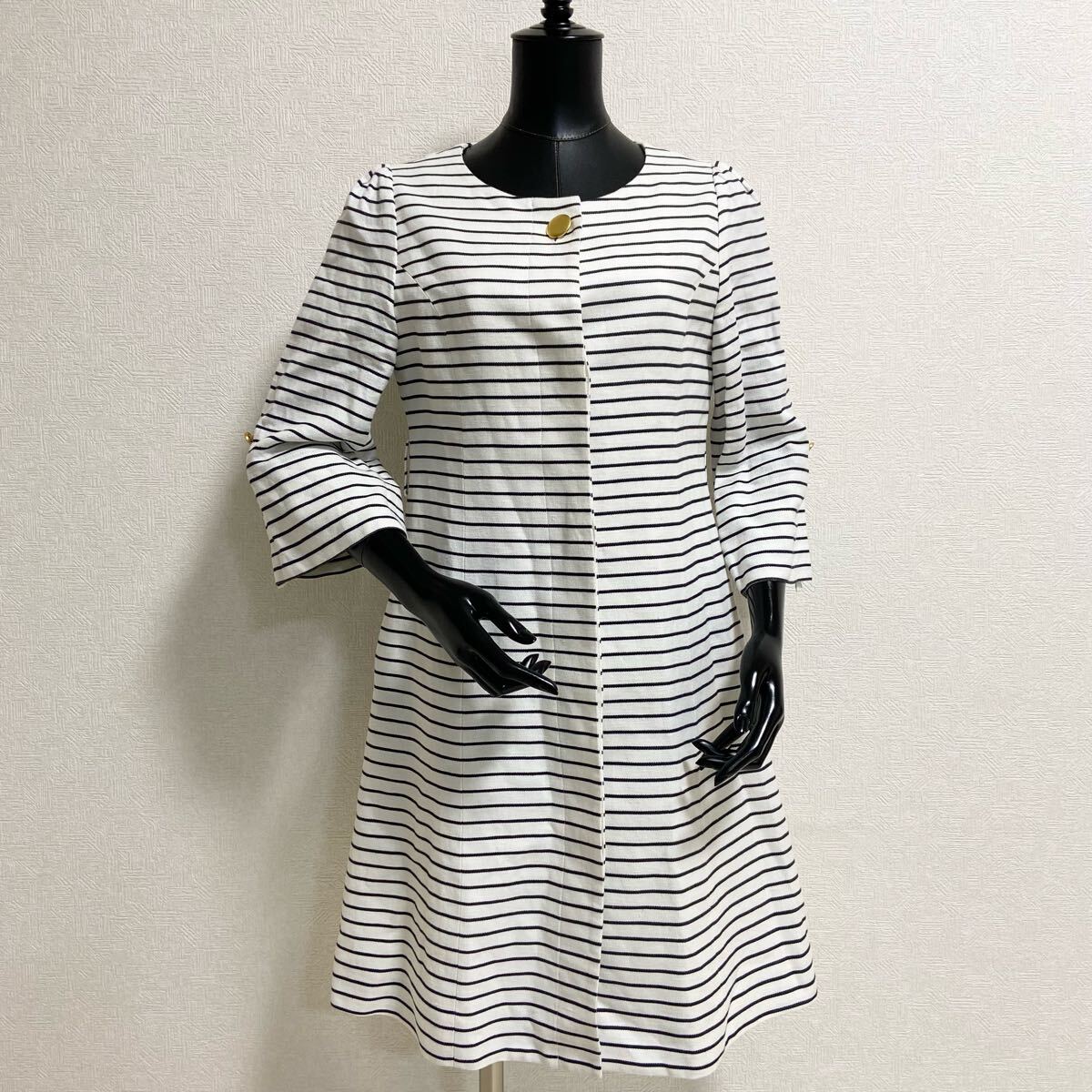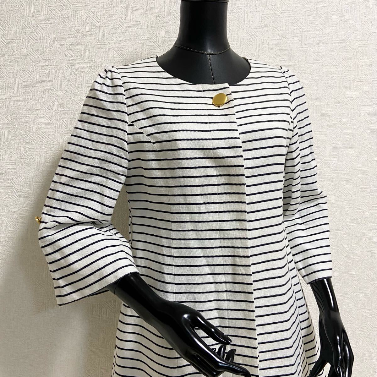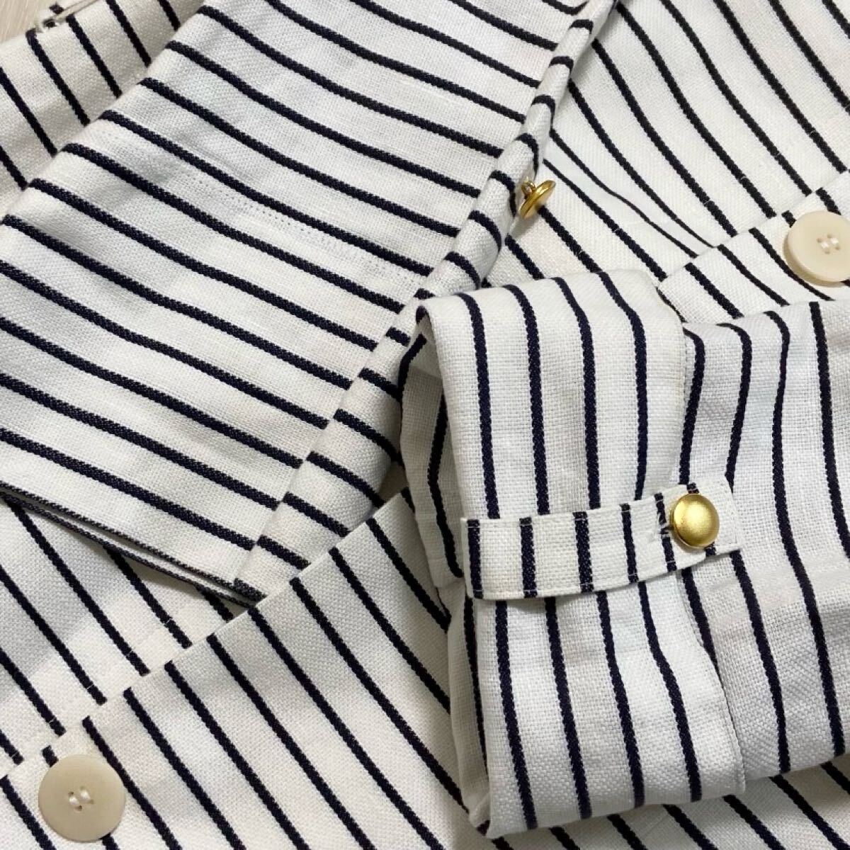 サラリとしたコットンとリネンを極上ブレンド。天然素材ならではの優しい着心地。美しいシルエット。ノーカラーでお顔周りスッキリ。袖丈も調整できる嬉しい仕様。ゴールドボタンがアクセント。精密なディテールやフィニッシング、完璧なカッティングライン。