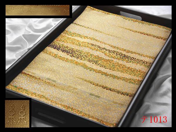 蔵【テ1013】西陣逸品 本袋 歌想ヌーリヴラグ 榛色地 正絹純金糸全通高級美術袋帯 ◇検◇簪着物名古屋帯和装小物帯締め