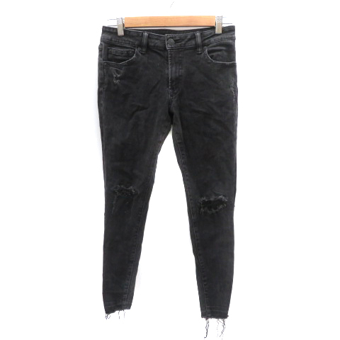 アズールバイマウジー AZUL by moussy デニムパンツ ジーンズ スキニーパンツ アンクル丈 ダメージ加工 L 黒 ブラック /YK1 レディース