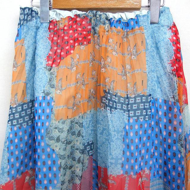 アズノウアズ as know as a.no.ne.ne. マルチ柄 プリント プリーツスカート ロング ※ ライトブルー /FT9 レディース