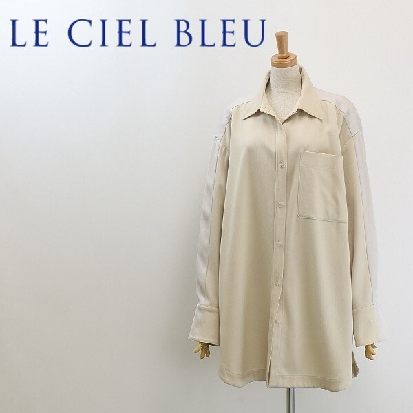 ◆LE CIEL BLEU ルシェルブルー ストレッチ 異素材 切替 オーバーシルエット チュニック シャツ アイボリー 36 | |