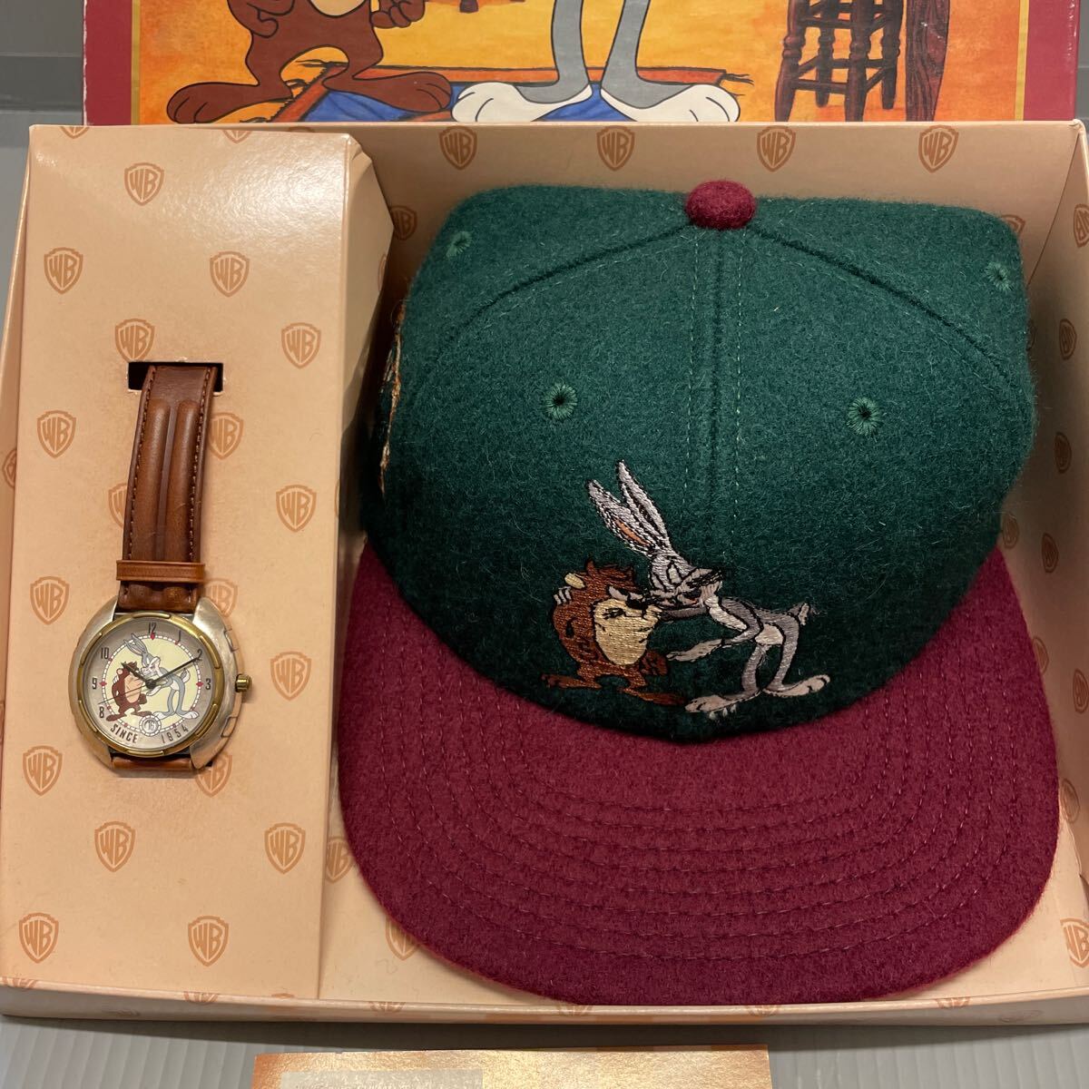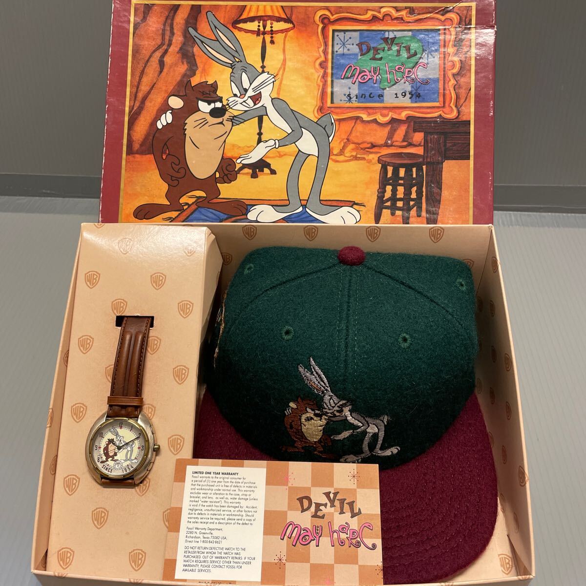 The Warner Bros Studio Stores ワーナーブラザーズ ストア 2500個限定 シリアル番号入り LIMITED EDITION DEVIL MAY HARE WATCH AND CAP SET ルーニーテューンズ バッグスバニー,タズマニアンデビル 腕時計&刺繍キャップ セット 1994年発売品 の箱入り未使用保管品になります。