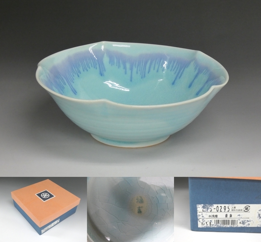 品名 【茶道具名品】 橘吉 水浅葱盛鉢 紙製箱 菓子鉢 お茶会 美スカイブルー器 茶道家収集品 |