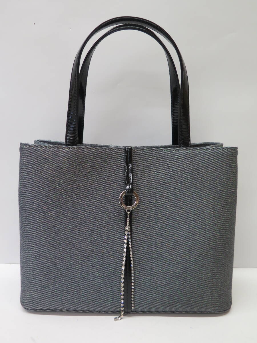 美品 Ungaro ウンガロ ハンドバッグ 手提げバッグ グレー系ラメ素材 日本製